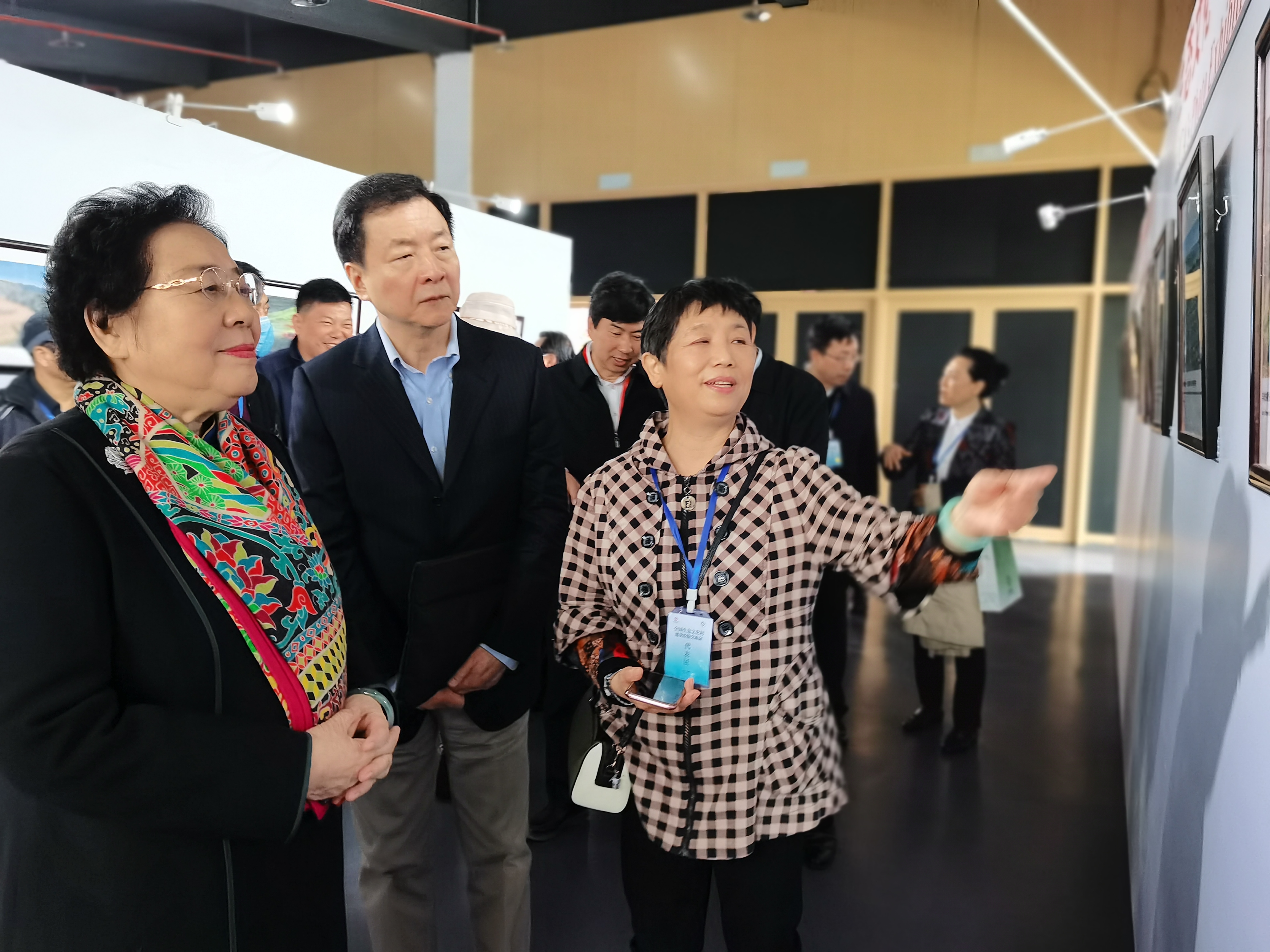 4月13日,前来出席全国生态文化村建设经验交流会的中国生态文化协会首任会长、中国生态文化协会专家指导委员会主任委员、国际竹藤组织董事会联合主席、中国花卉协会会长江泽慧,中国生态文化协会专家指导委员会副主任委员、人民日报社原副总编辑陈俊宏,中国生态文化协会专家指导委员会副主任委员、中国外文局原局长、中国翻译协会会长周明伟等,在中国生态文化协会专家指导委员会委员、原国家林业局资源司司长汪绚,中国生态文化协会会长刘红和秘书长尹刚强的陪同下,与来自全国24个省区市的参会代表,一同参观了“生态文化·美丽乡村百图展”,并对百图展给予了高度评价。