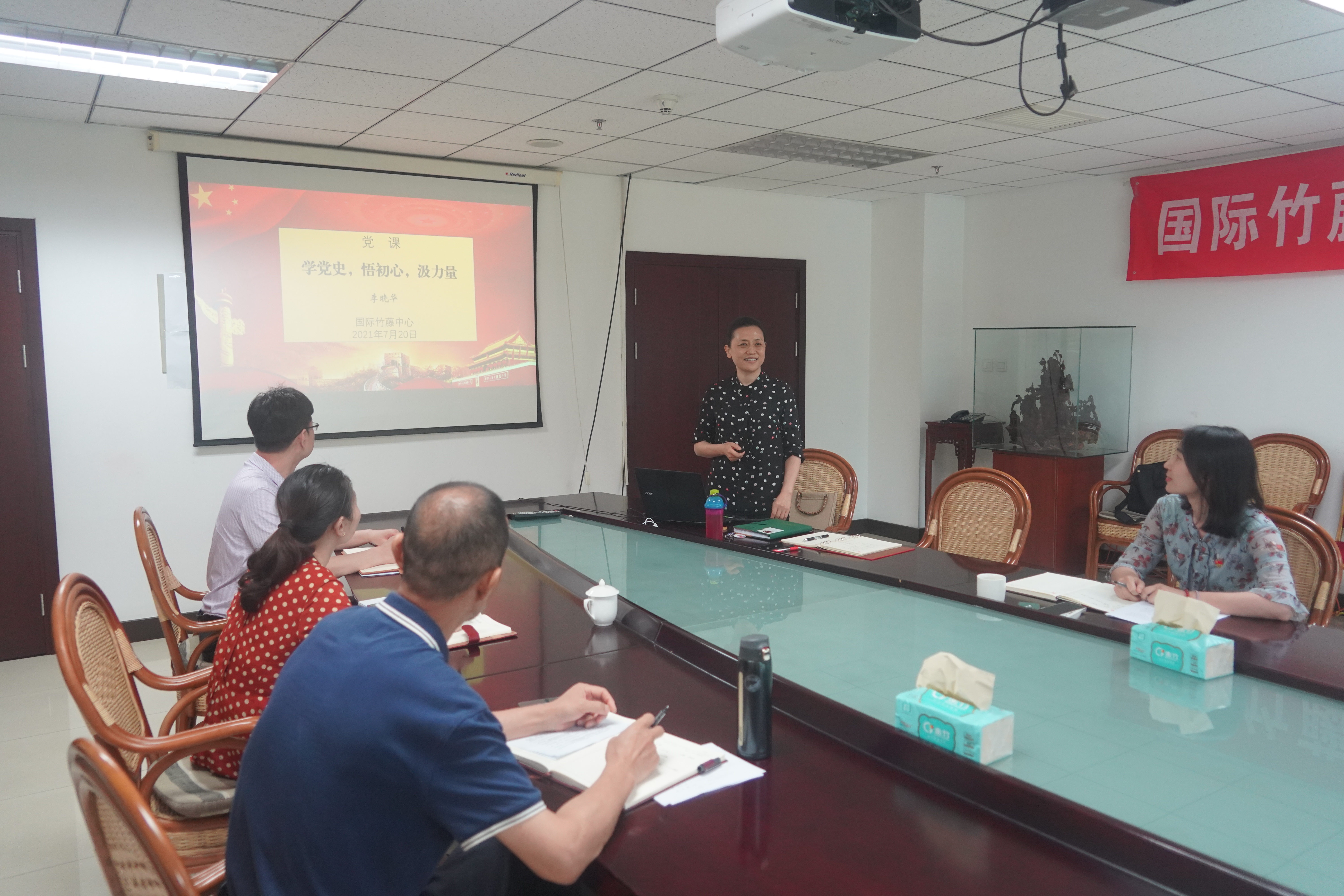 为深入学习贯彻习近平总书记在庆祝中国共产党成立100周年大会上的重要讲话精神,国际竹藤中心第一党支部按照中心党委要求,积极丰富拓展党史学习教育内涵,7月20日,国际竹藤中心党委副书记李晓华同志以“学党史,悟初心,汲力量 ”为主题,为第一党支部全体党员带来了一场内容丰富、精彩生动的专题党课,引导党员学史明理、学史增信、学史崇德、学史力行,进一步增强使命感和责任感。