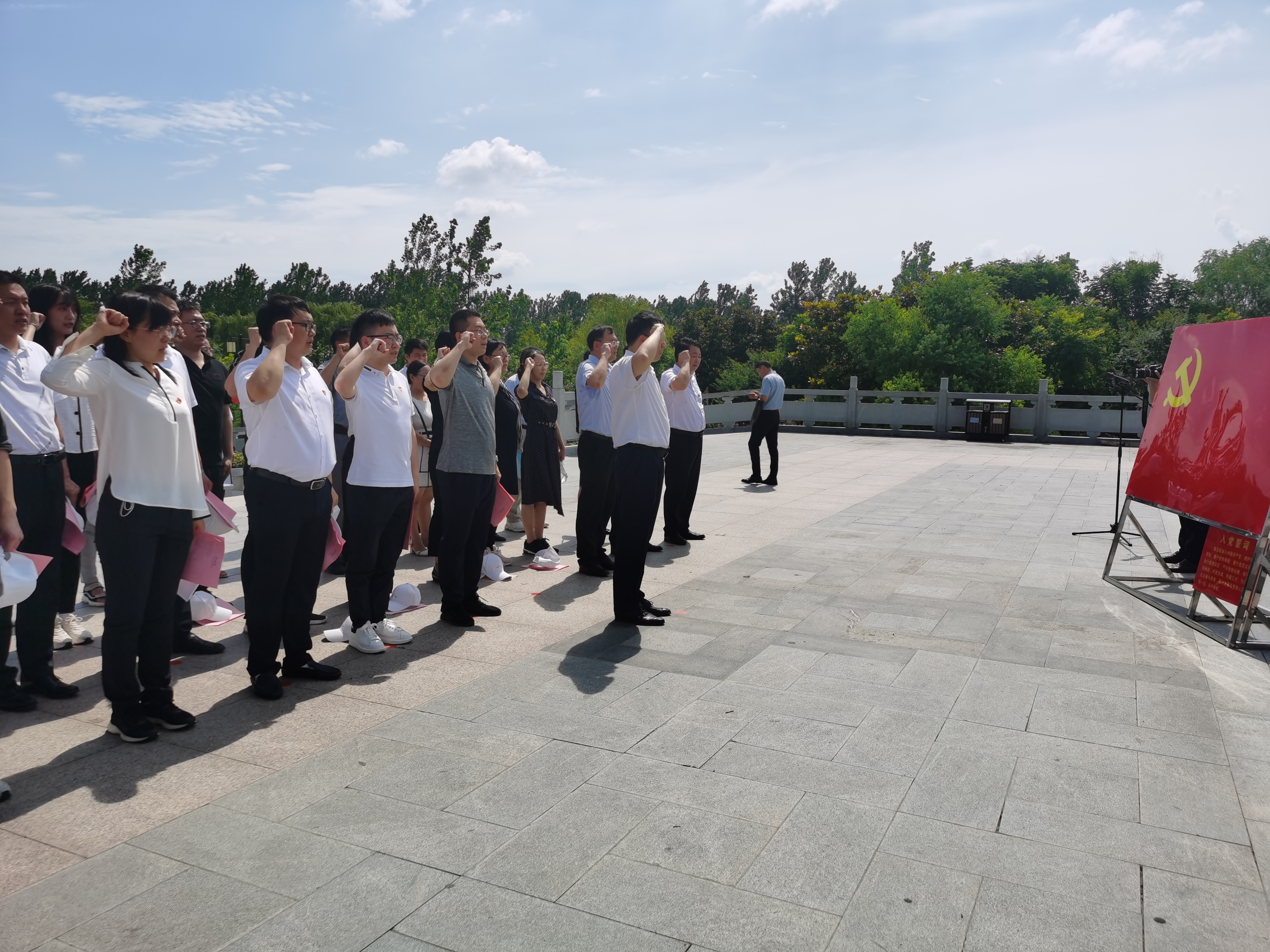 尹刚强书记带领大家在江上青烈士塑像前重温入党誓词