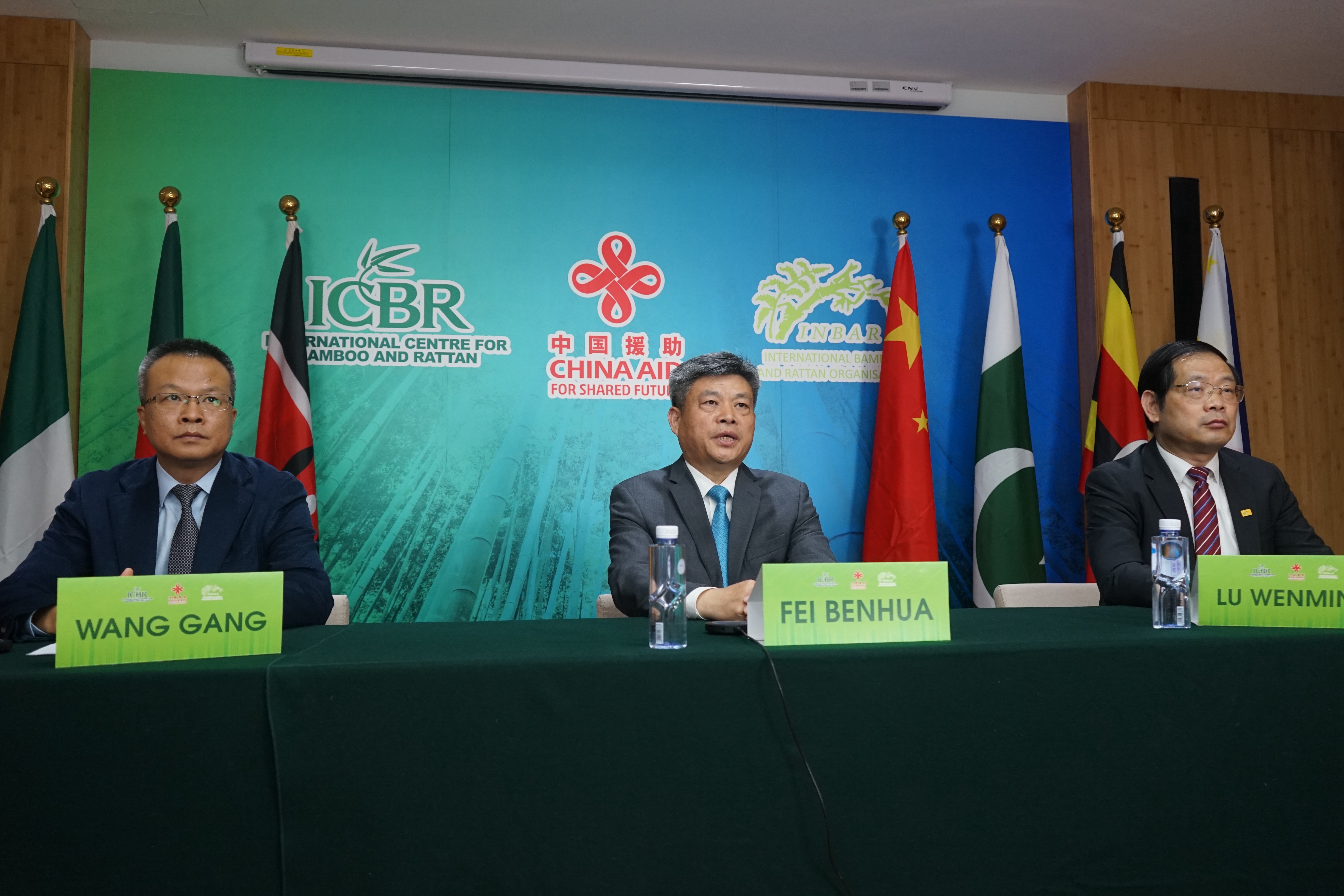 费本华在致辞中说,竹和藤是重要的可再生资源,也是大自然赋予人类的宝贵财富,在很多发展中国家有广泛分布。中国是世界上竹类植物种类最多、分布最广的国家之一,一直致力于推动竹藤科技创新和竹藤产业的绿色发展。作为中国乃至世界竹藤领域科技创新的中坚力量,多年来,国际竹藤中心围绕服务国际竹藤组织及其成员国,按照中国商务部、国家林草局等部门援外工作部署,已成功举办了55期竹藤及相关领域国际培训班,培训了84个国家近2000名高级官员和技术人员,得到了各国政府和国际社会的高度认可和广泛赞誉。本次研修班的目的,主要是通过分享中国竹藤科技创新和绿色发展的思路、做法、经验和成效,让各国学员充分认识竹藤产业对促进经济社会发展和改善生态环境的重大意义,增强竹藤科技创新和成果转化能力,推动产业结构调整和经济增长方式转变,提高保护环境、发展经济、减少贫困的能力,促进发展中国家竹藤产业可持续发展。