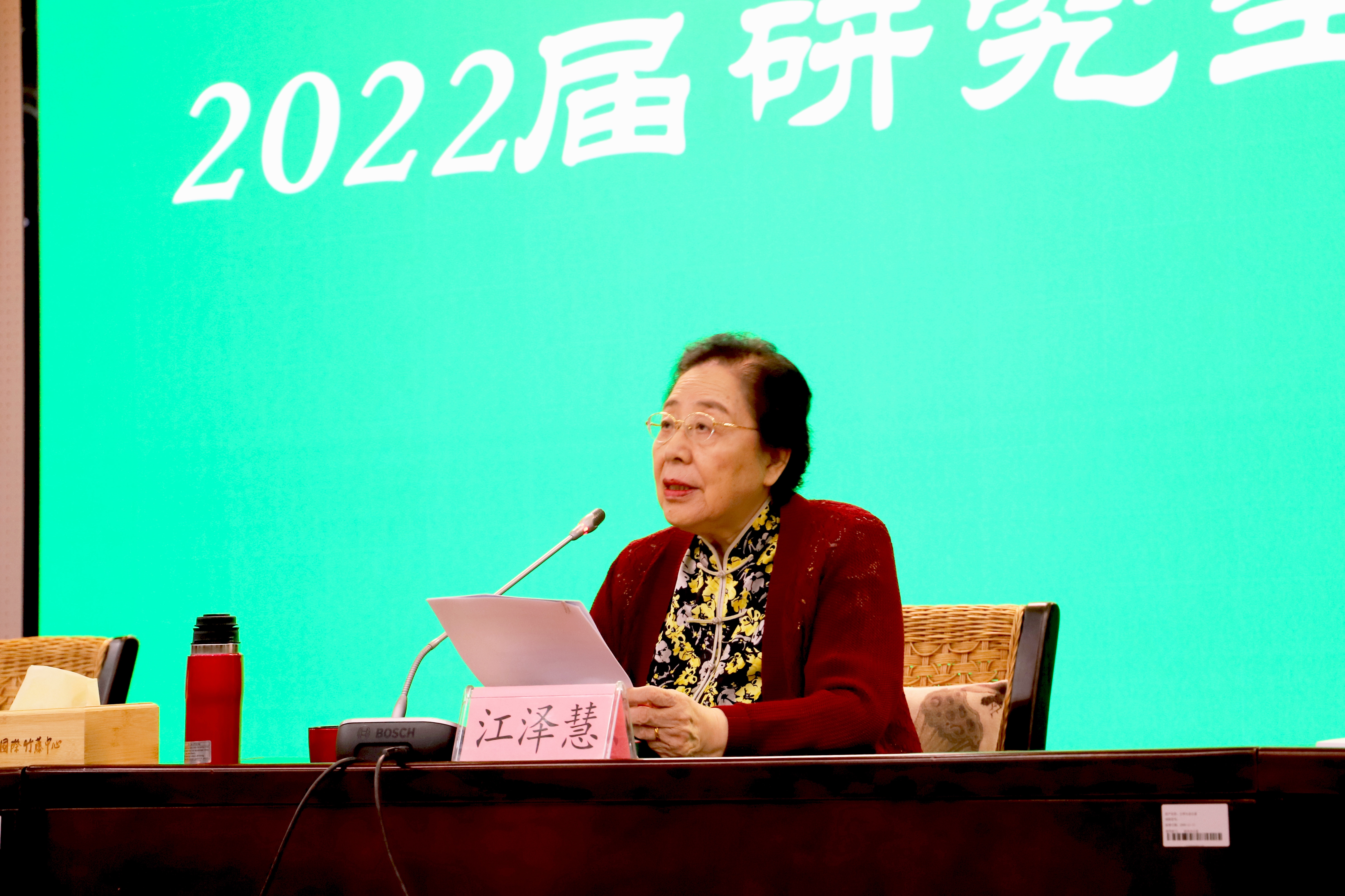 江泽慧教授在讲话中希望毕业生延续爱党爱国、不忘初心的精神和创新奉献科学热情,新征程中脚踏实地、求真务实,坚持诚信与正直、执着与勇气,肩负起对自己、对亲人、对家庭、对社会、对祖国的责任,充分释放自我潜力和能量,用锲而不舍的精神和志向超迈的情怀,在创造、奉献、奋斗中不断突破自我、升华自我,成就光辉的人生!