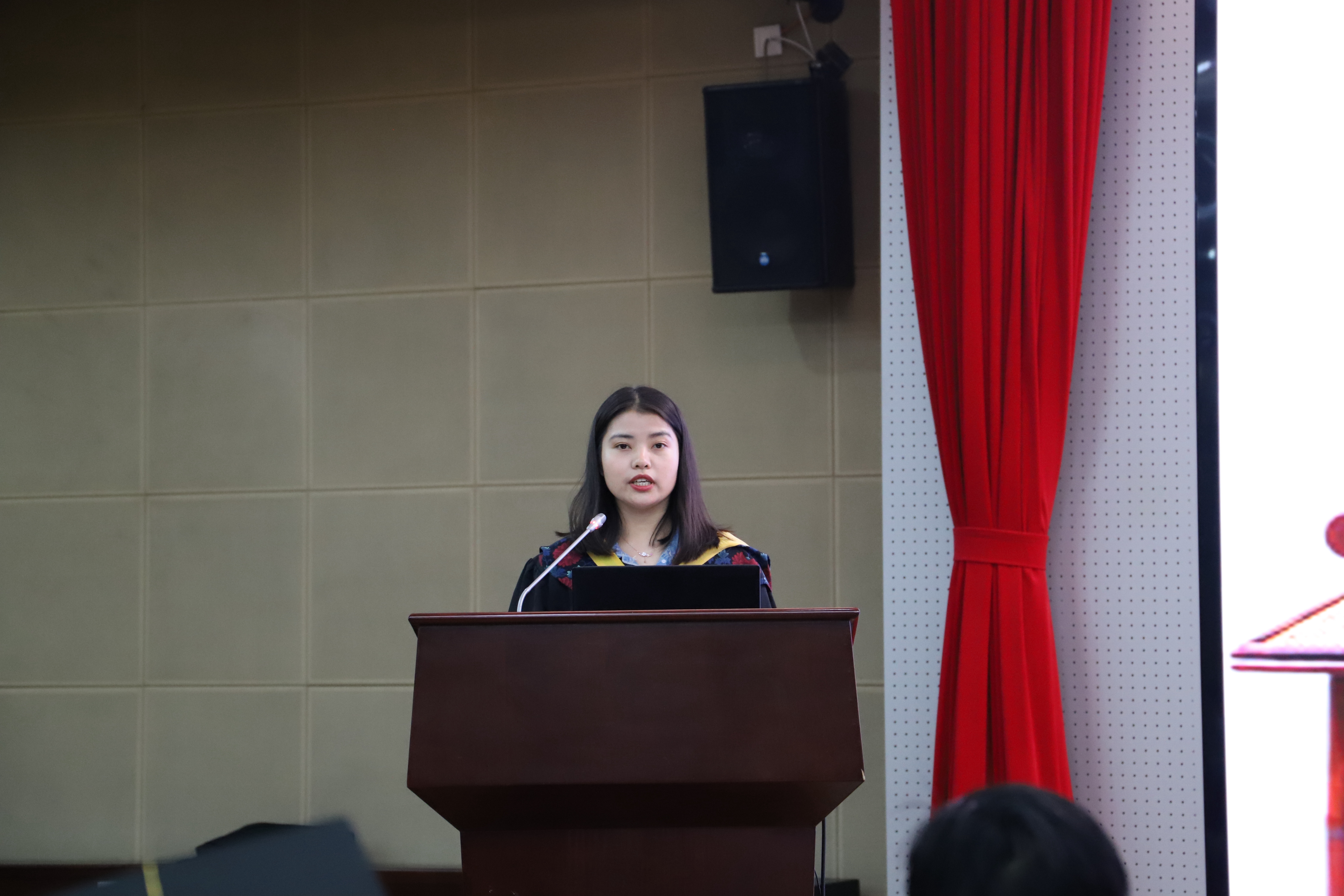 欢送会上三位毕业生,用学术报告跟母校分别,跟同窗再见,在分享他们研究生期间所获得科研成果的同时,寄语学弟学妹们要潜心科研,求知探索,以青春之我、奋斗之我相遇未来旅途。