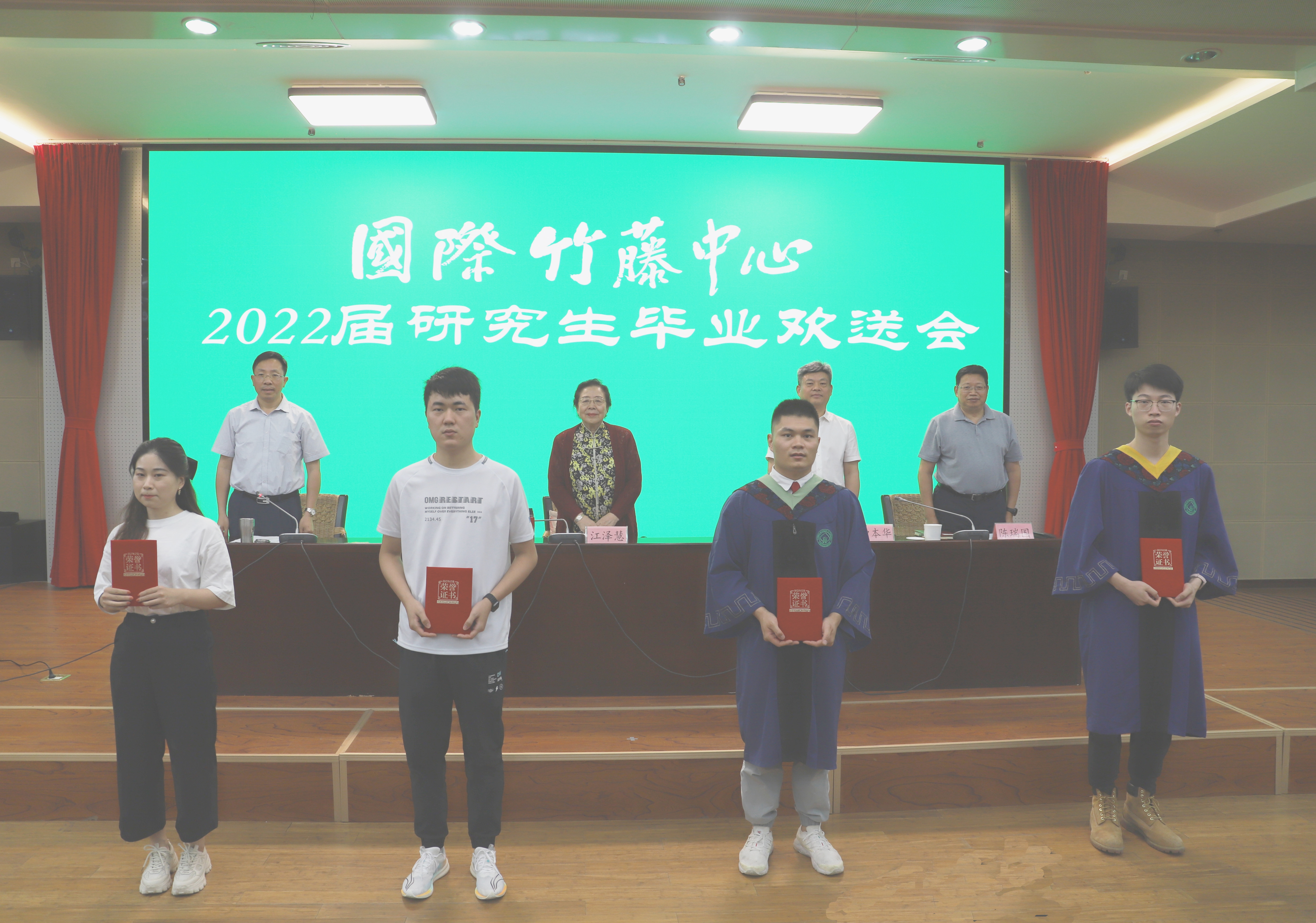 6月30日上午10点,国际竹藤中心2022届研究生毕业欢送会在中心科研综合楼六楼会议室隆重举行,共同庆祝38名毕业生圆满完成学业,走向新的人生征程。出席本次活动的领导有国际竹藤中心首席科学家、博士生导师、国际竹藤组织董事会联合主席江泽慧教授,中心主任、党委副书记费本华研究员,中心党委书记、副主任尹刚强高级工程师,中心副主任陈瑞国高级工程师。参加本次毕业典礼的还有导师代表、中心各职能处室和研究所负责人、研究生部全体工作人员、在读研究生及毕业生。欢送会由研究生部分管领导尹刚强书记主持。