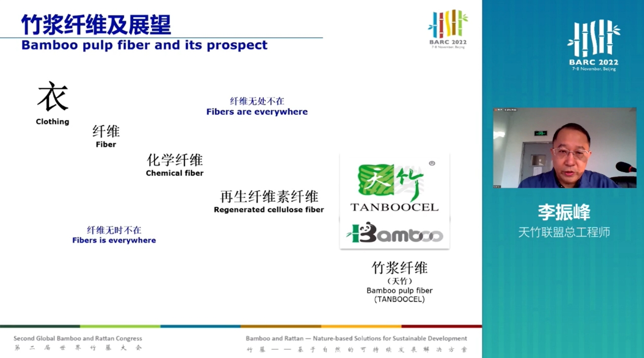 2022年11月8日,第二届世界竹藤大会“竹纤维产业的绿色可持续发展”边会成功召开。本边会由国际竹藤中心主办,程海涛研究员负责主持。会议围绕竹纤维制备和性能、竹纤维制品研发及产业化、竹纤维健康可持续发展等议题,邀请了中国林业科学研究院林产化学工业研究所房桂干研究员、天竹联盟李振峰董事长、广东竹康材料科技有限公司李蜜南董事长、重庆瑞竹植物纤维制品有限公司王建忠董事长、赣南师范大学江西竹基新材料工程中心李星星副教授、国际竹藤中心竹藤生物质新材料研究所李明鹏博士与国内外百余名参会代表线上交流了竹纤维领域的最新研究成果,并对其产业化经验进行讨论,提升竹纤维产品质量,拓展竹纤维应用领域,落实“以竹代塑”全球行动计划。