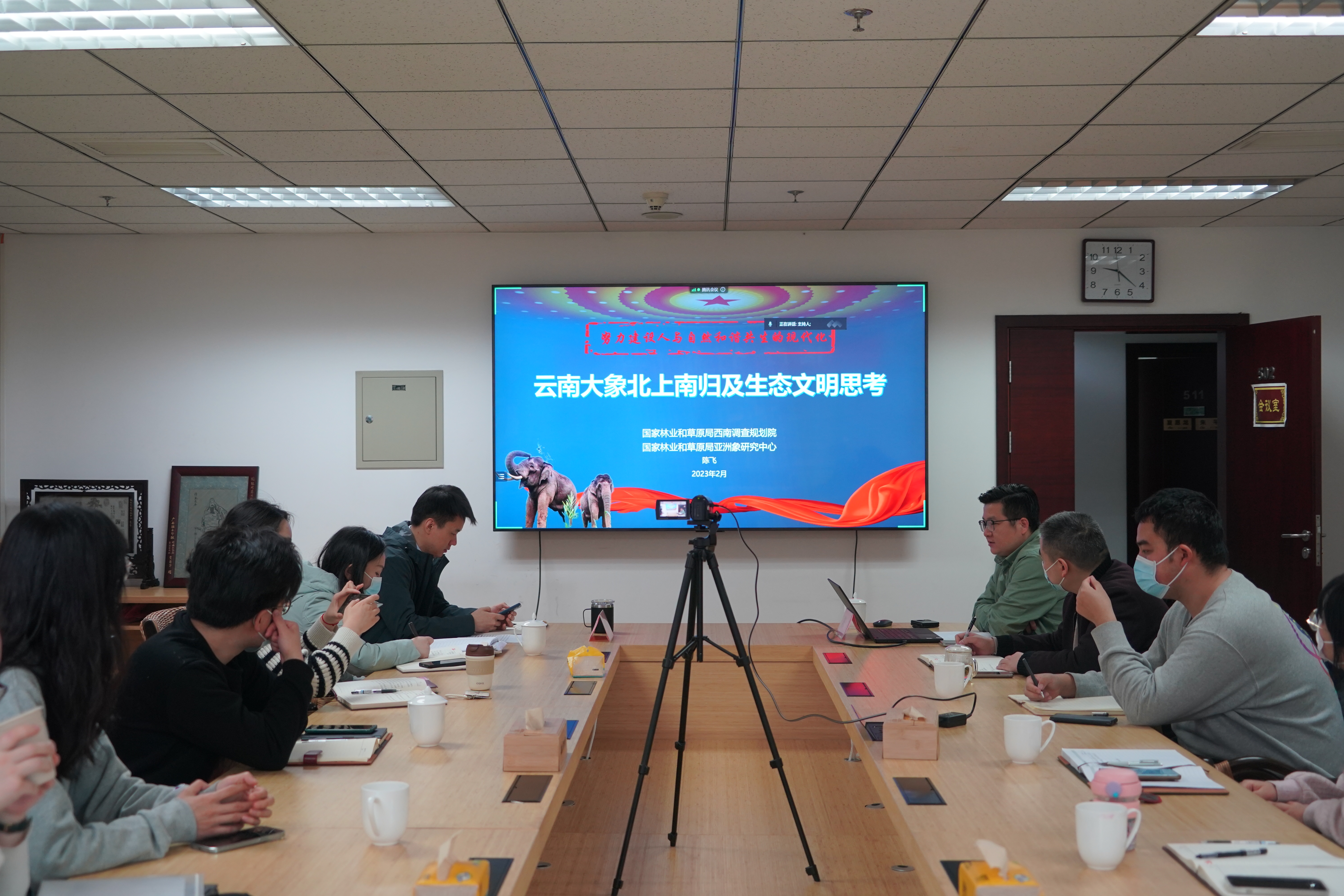 为深入学习贯彻习近平生态文明思想,认真贯彻落实党的二十大精神,2023年2月15日,国际竹藤中心青年理论学习小组举办“青年成长论坛”第二讲。论坛采取线上线下相结合的形式,邀请国家林业和草原局亚洲象研究中心主任陈飞讲解“云南大象北上南归及生态文明思考”。中心青年理论学习小组管理组组长李德月主持论坛,青年理论学习小组成员、团委等约30位青年干部参加并进行交流发言。