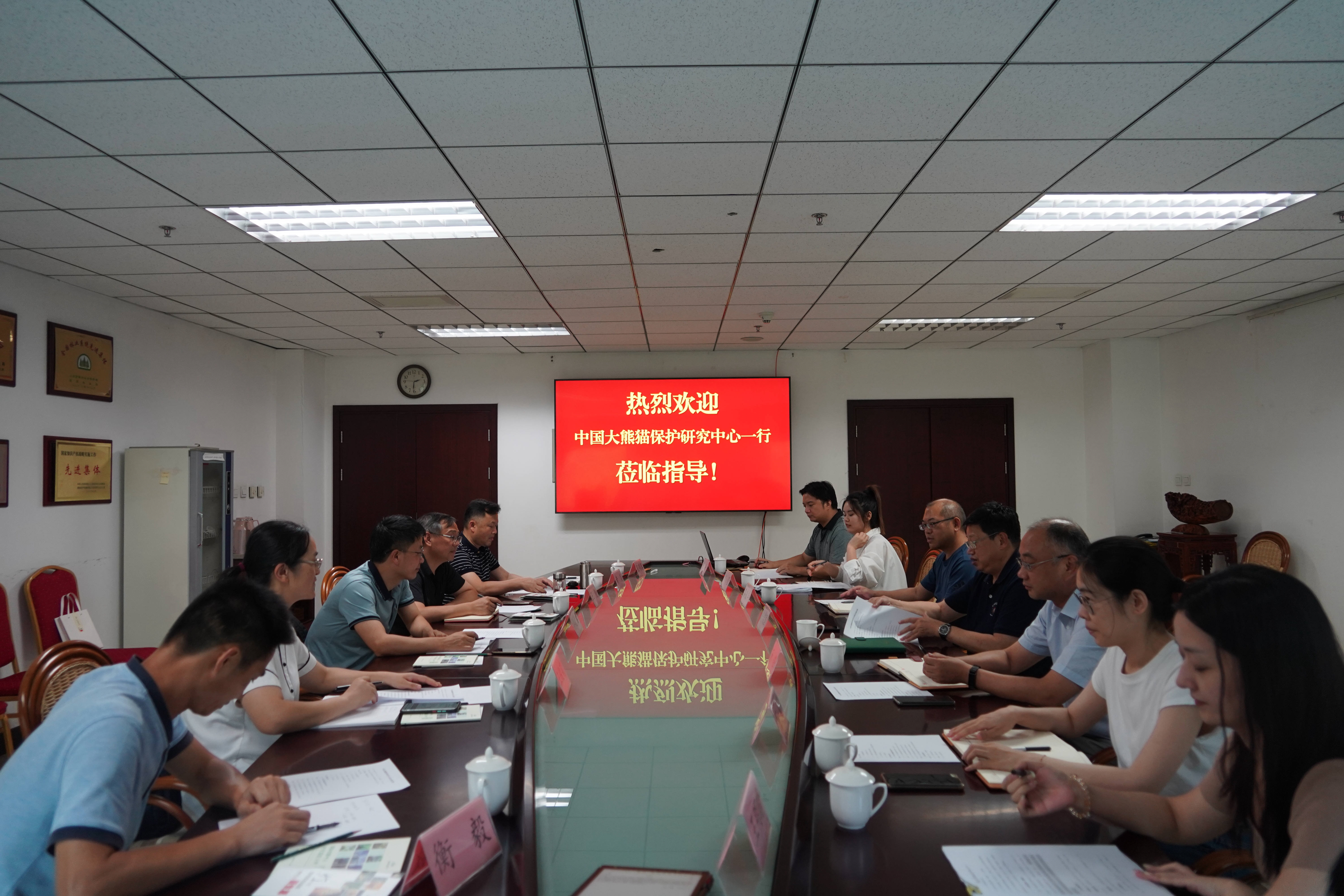 2023年7月27日,中国大熊猫保护研究中心副主任李德生一行5人来国际竹藤中心调研,中心副主任陈瑞国参加活动并召开合作交流座谈会,中心综合办、人事处、科技处、计财处、化学所相关人员参会。