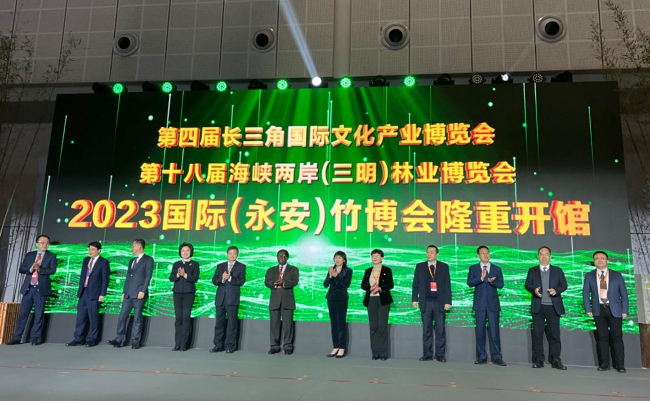 2023年11月16日至19日,2023国际(永安)竹博会在上海举办,这是第四届长三角国际文化产业博览会、第十八届海峡两岸(三明)林业博览会重要组成部分,国际竹藤中心作为主办单位之一为会议提供全方位指导。中心党委副书记、纪委书记李平先出席会议并参加“以竹代塑,从我做起”万人签名活动和共同开馆环节,科技处、材料所相关人员参会。