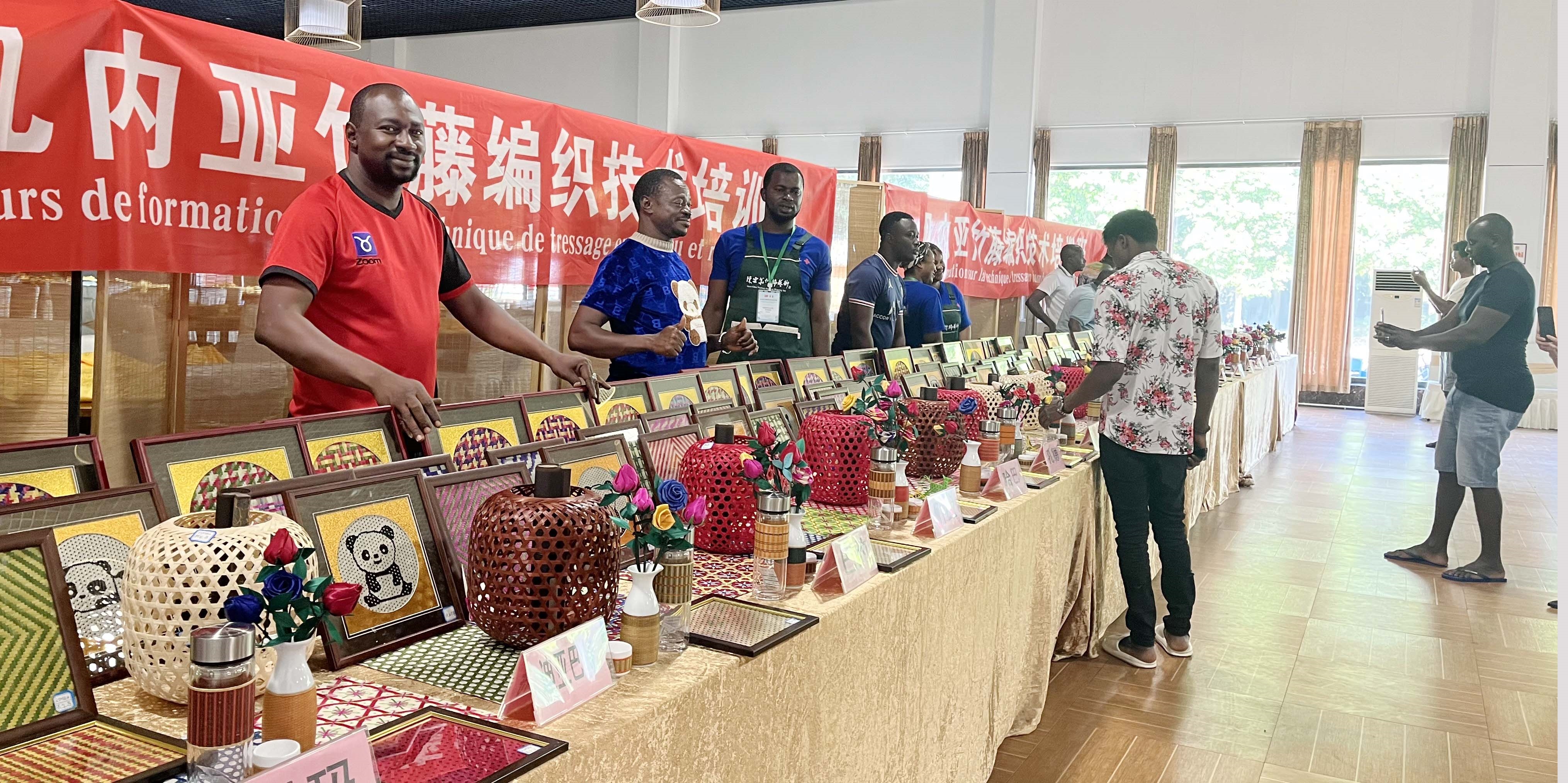 中非和厄瓜多尔学员展示立体竹编培训成果