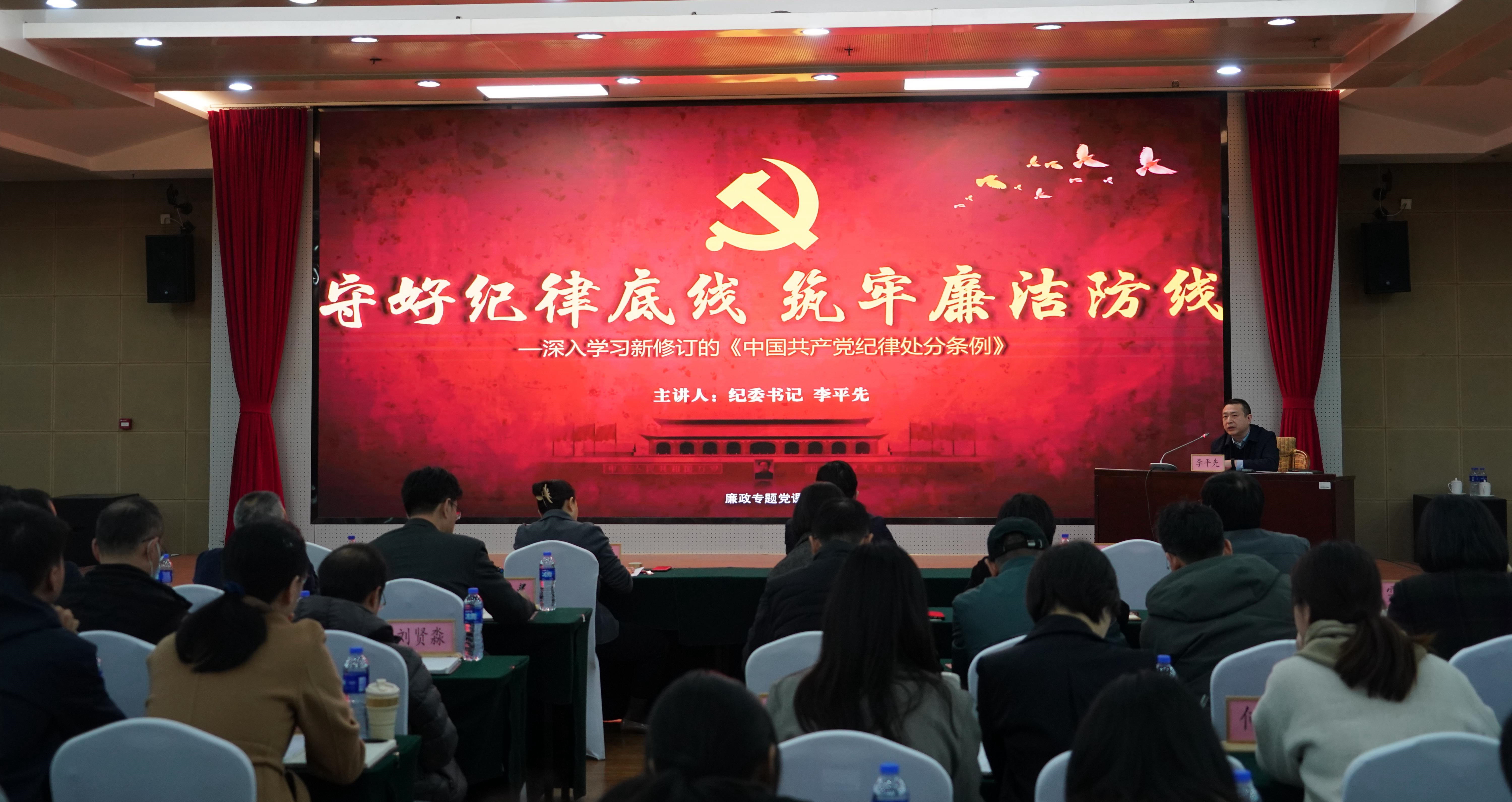 为深入学习贯彻习近平总书记在二十届中央纪委三次全会重要讲话精神,进一步引导党员、干部学纪、知纪、明纪、守纪,党委副书记、纪委书记李平先以“守好纪律底线 筑牢廉洁防线”为主题讲廉政专题党课,对《中国共产党纪律处分条例》的学习背景、学习目标、基本架构和条文内涵等进行深入浅出的解读。通过讲课,大家更加明确了该做什么、不该做什么,能做什么、不能做什么,全面准确了解党的纪律规矩特别是政治纪律和政治规矩,同时以学习条例为契机,引导党员干部一体学习、贯通把握党内法规和国家法律,把纪法规定内化于心、外化于行。