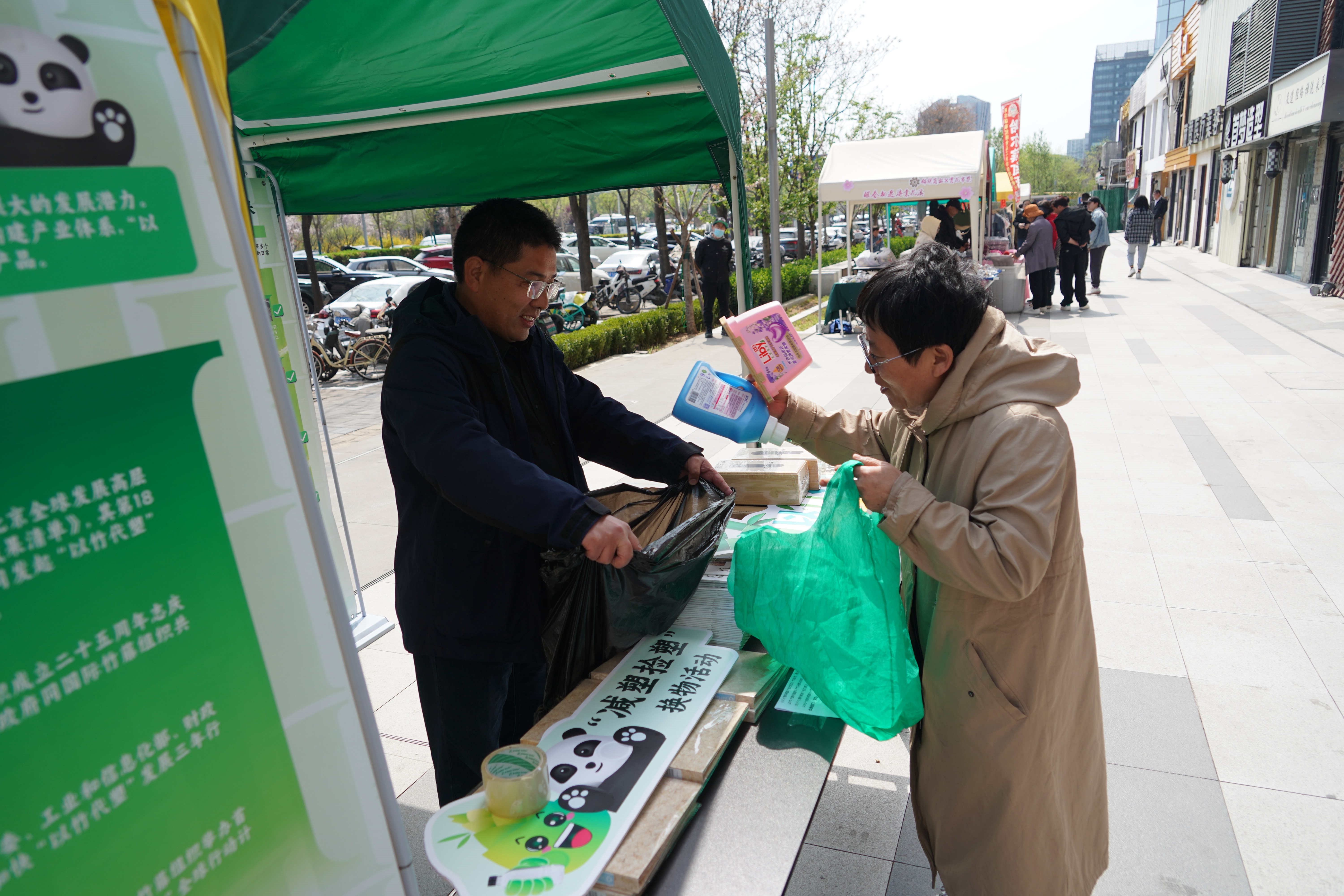 2024年4月9日,国际竹藤中心联合望京街道在“醒春相遇·海棠花溪”文化节上开展“以竹代塑”公益宣传,旨在引导社区居民践行“以竹代塑”倡议、助力生态文明建设。