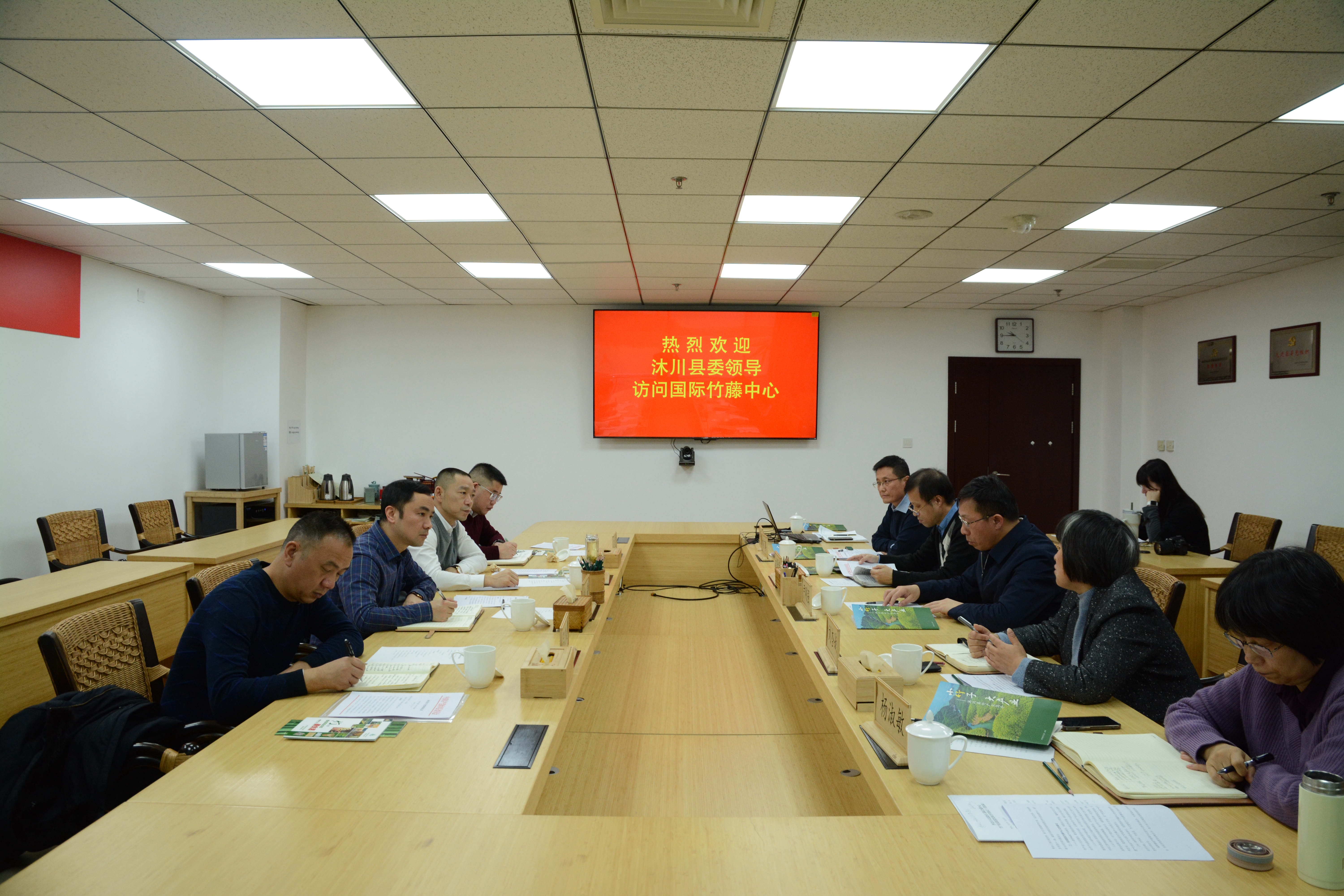 2024年12月13日,四川省沐川县县委书记赵星一行来访国际竹藤中心(以下简称"中心")。中心党委书记、副主任尹刚强带领综合办、科技处、产业处、材料所、资环所等相关部门负责人与客人座谈交流。