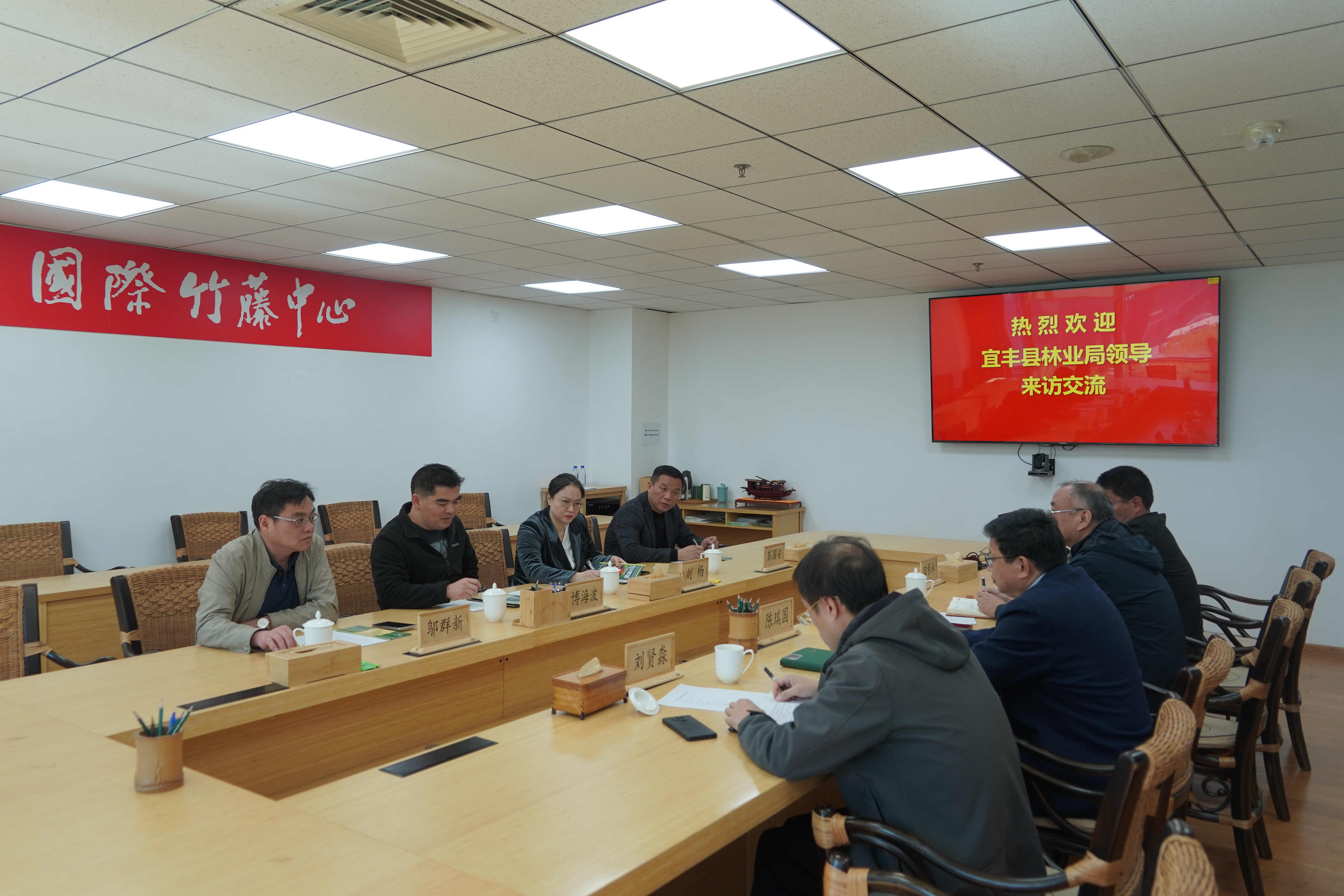 <html style=""> <head style=""></head> <body style=""> <p style="text-indent:2em">2025年4月14日,江西省宜丰县林业局局长傅海波一行来访国际竹藤中心(以下简称“中心”)。中心副主任陈瑞国带领产业处、化学所、综合办等相关部门负责人与客人座谈交流。</p> <p style="text-indent:2em">会议重点围绕如何发挥宜丰县丰富的竹资源禀赋、推动竹产业升级等内容展开深入交流与讨论。双方一致认为,宜丰县竹资源丰富、产业基础扎实,可依托中心的技术、人才和平台优势,通过科技支撑助力传统产业的革新和发展,推动竹产业与地方经济的深度融合,助力区域经济可持续发展。</p> <p style="text-align:center" class=" center"><img src="$/history/article/2025/4/202504171702199747.jpg" alt="" width="865" height="577" title="" style="" /></p> <p style="text-align: center">会议现场</p> </body> </html>