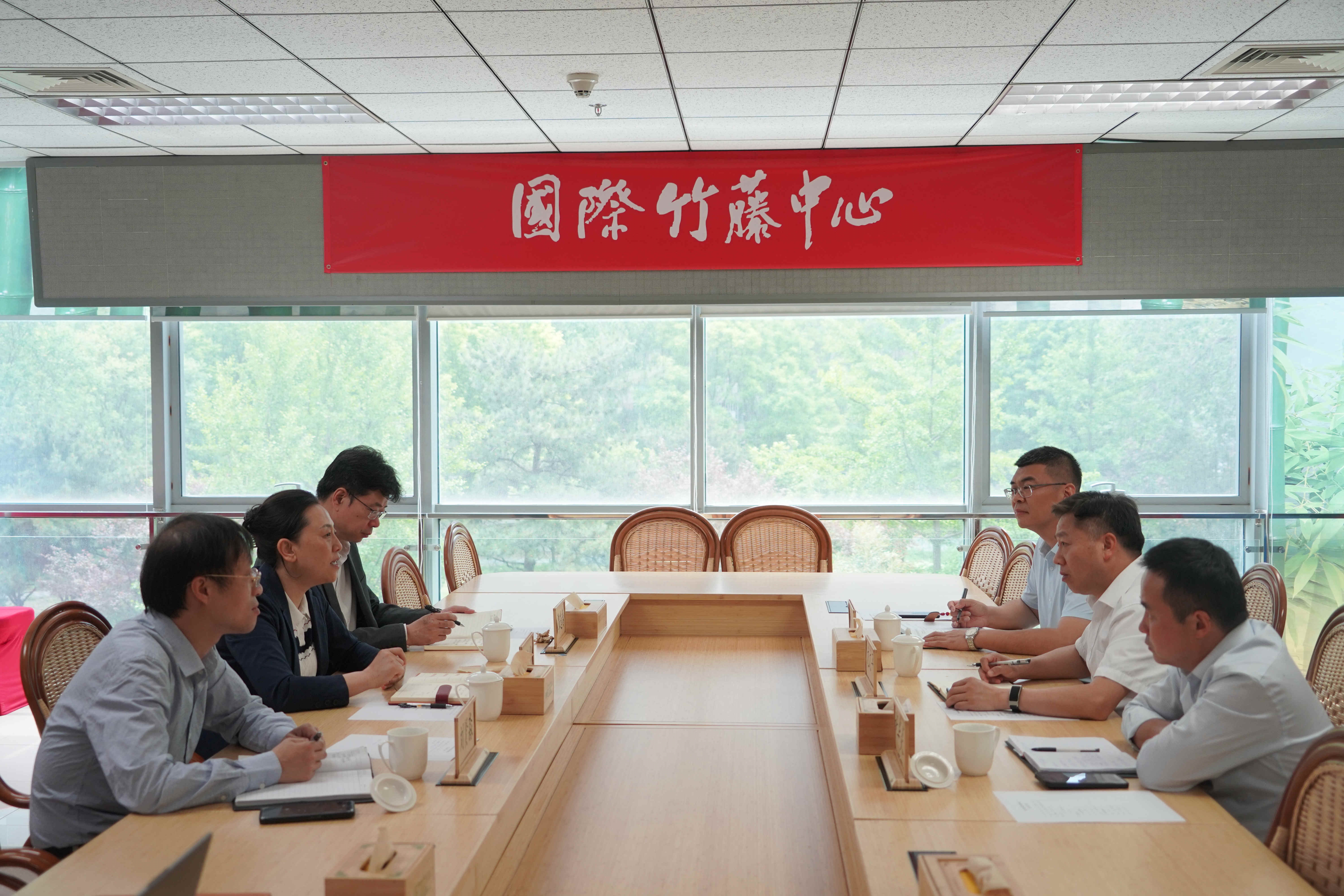 5月8日,江西省宜春市科学院党委书记龙文平一行来访国际竹藤中心(以下简称“中心”)。双方就产业发展、科技合作、平台建设等进行了座谈交流。大家一致认为,可以立足宜春市资源禀赋和产业特点,发挥中心技术、人才、平台优势,通过科技赋能不断提高竹产品附加值,持续将竹资源优势转化为经济优势,共同推动宜春市竹产业高质量发展。