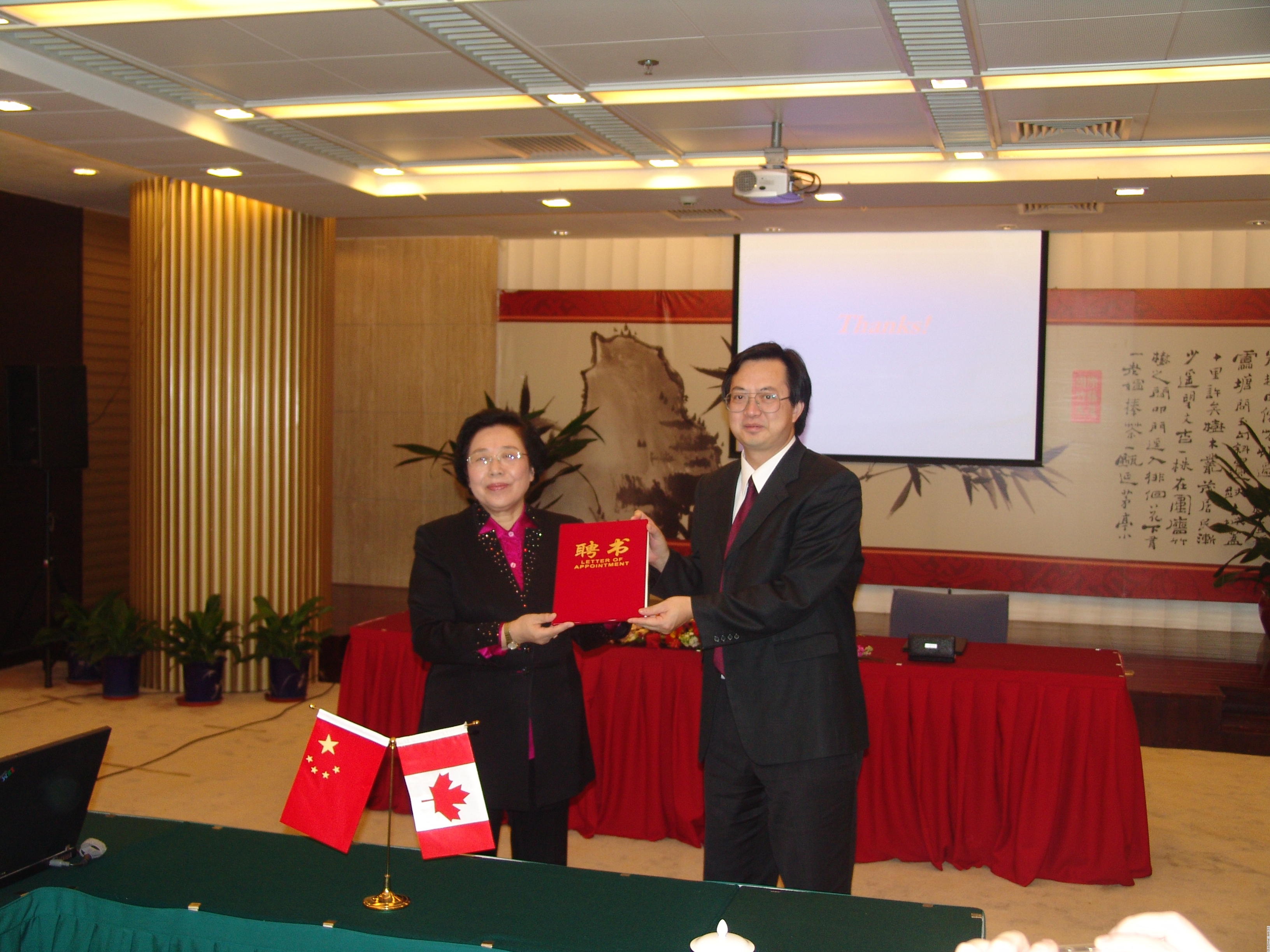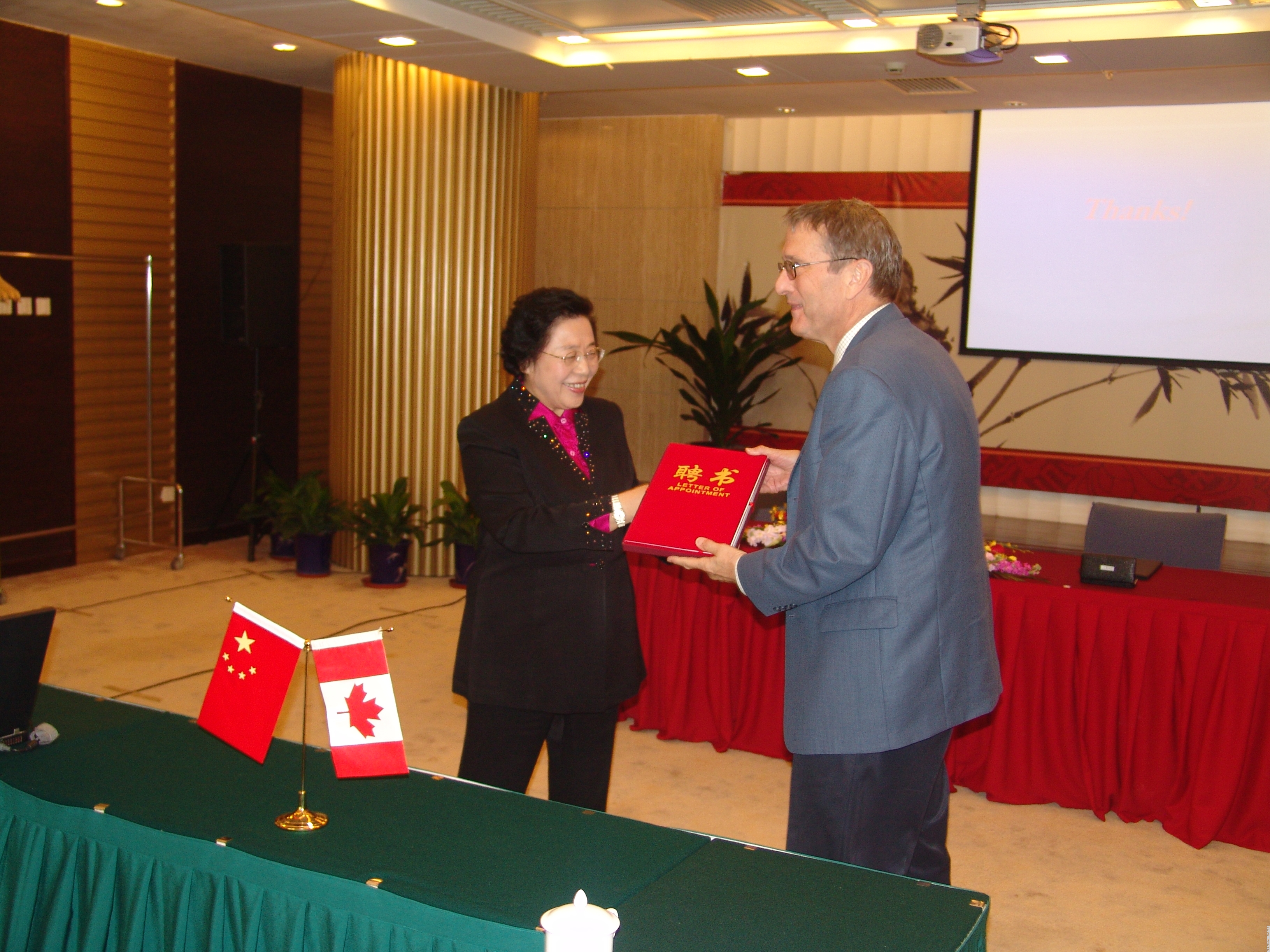签字仪式上,国际竹藤网络中心还颁发证书,聘请Ian de La Roche博士为高级顾问,聘请Tony Zhang博士为客座教授。