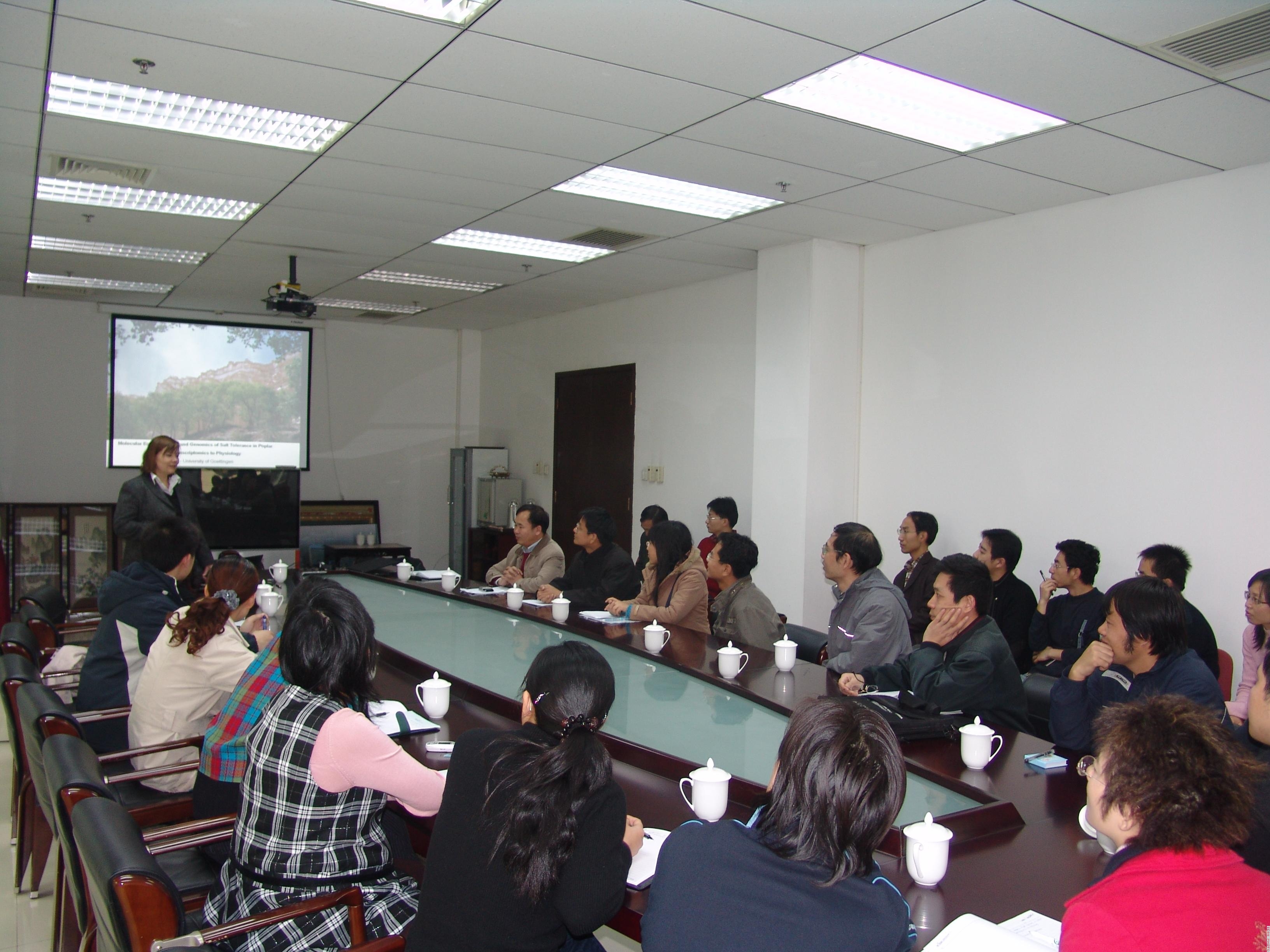 2007年11月5日下午,应国际竹藤网络中心“948”项目组邀请,德国哥廷根大学森林植物所所长、德国自然科学基金委员会委员、国际知名刊物《植物、细胞与环境》(Plant, cell & environment)编委、著名分子生态生理学家Andrea Polle教授在国际竹藤网络中心作了题为“杨树耐盐性分子生态生理和基因组的研究”(Molecular ecophysiology and genomics of salt tolerance in poplar)的专题学术报告。这是继9月份邀请德国蒂宾根大学植物和微生物研究所所长、第五届国际菌物学会主席、《菌物学进展》(Mycological Progress) 主编Franz Oberwinkler教授所作的“植物和真菌的共同进化”(Coevolution of plant and fungi)学术报告之后,国际竹藤网络中心承担的“948”项目又一次邀请国际知名专家到中心讲学。