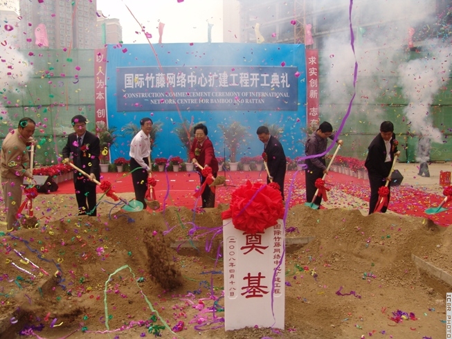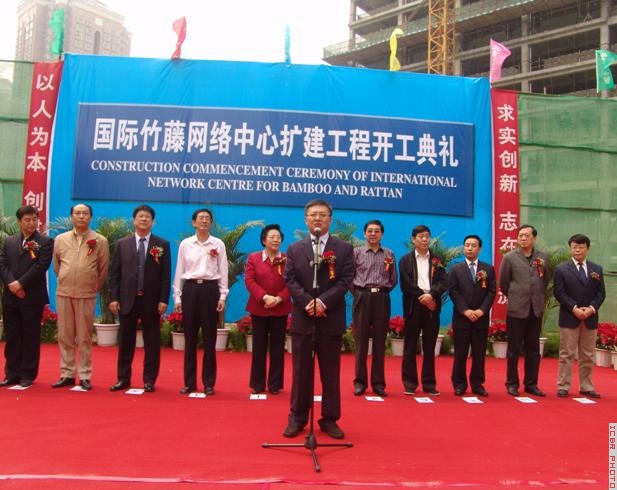 2008年4月18日上午,国际竹藤网络中心扩建工程开工典礼隆重举行。全国政协人口资源环境委员会副主任、国际竹藤组织董事会联合主席、国际竹藤网络中心主任江泽慧,国家林业局党组成员、副局长祝列克出席开工仪式。仪式由国际竹藤网络中心常务副主任岳永德主持。