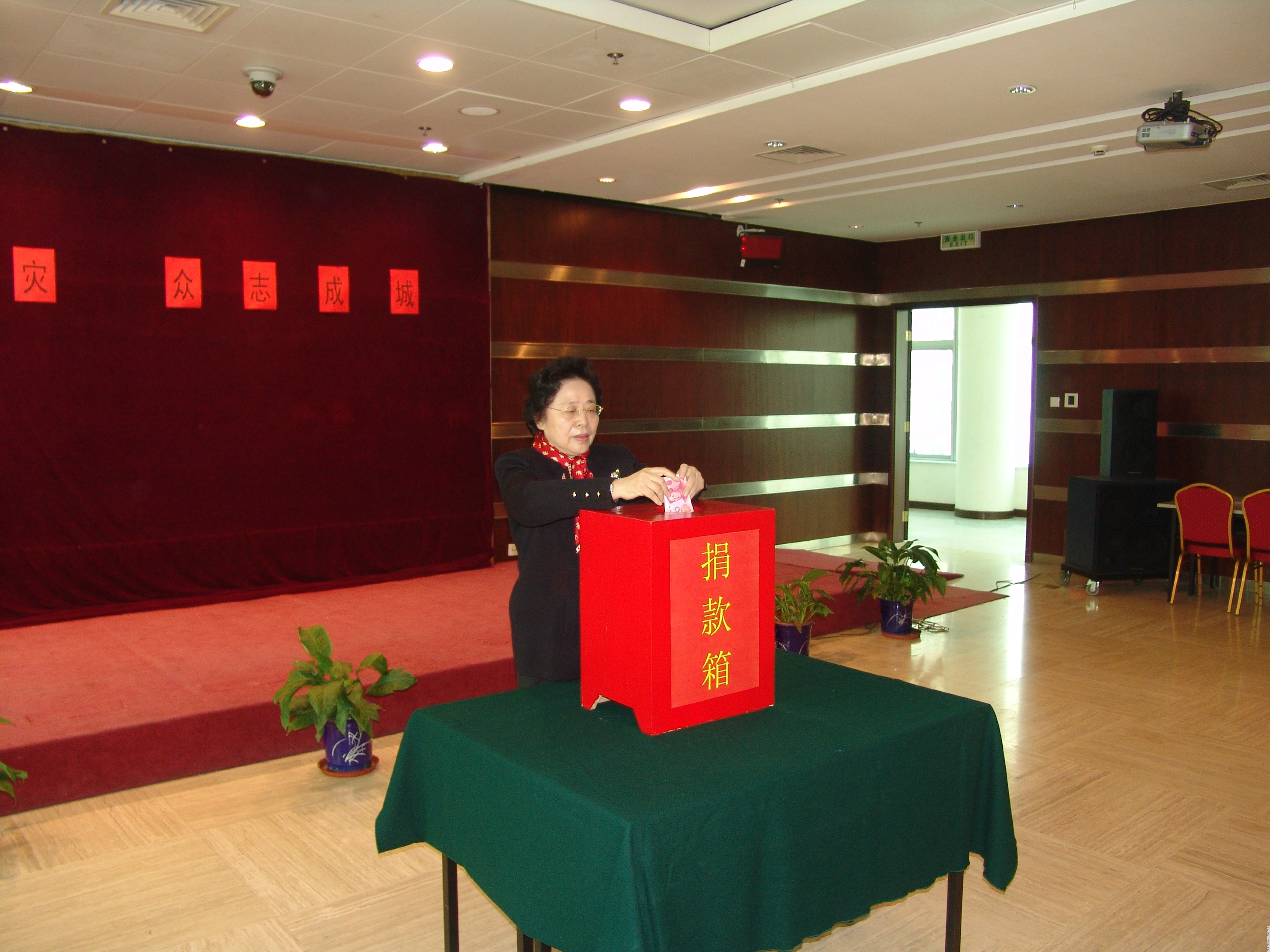 随后,江泽慧等中心领导率先向捐款箱中投下自己的捐助,大家积极响应,排成长队,纷纷踊跃捐款,向灾区群众伸出了援助之手,表达了爱心。