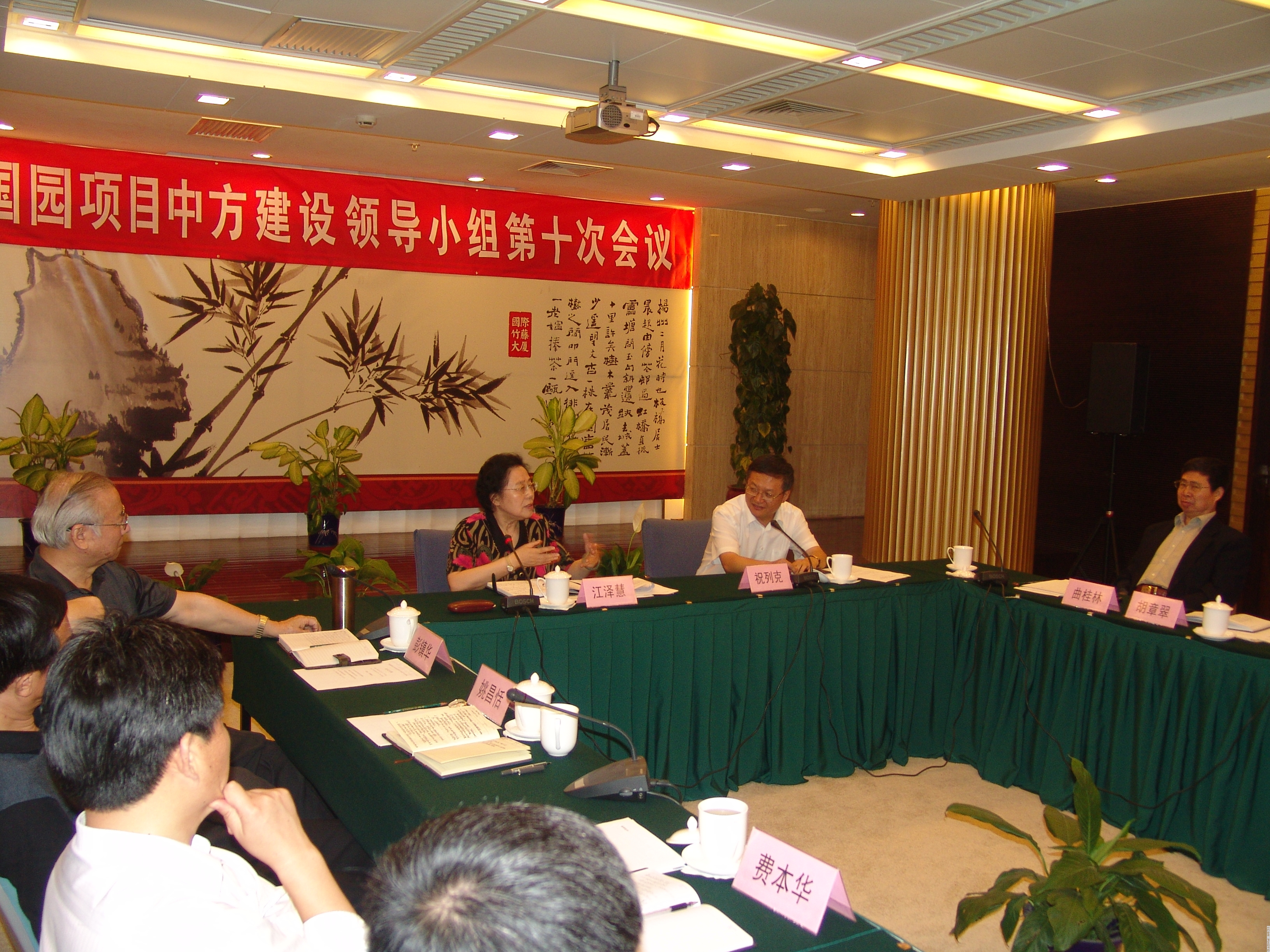 2008年6月10日下午,中国园项目中方建设领导小组第十次会议在国际竹藤大厦召开。会议由全国政协人口资源环境委员会副主任、国际竹藤网络中心主任、中国园项目中方建设领导小组组长江泽慧主持。国家林业副局长祝列克出席会议并作重要讲话。