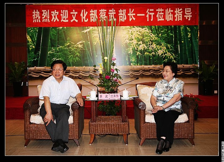 2008年8月7日下午,全国政协人口资源环境委员会副主任、国际竹藤组织董事会联合主席、国际竹藤网络中心主任、中国生态文化协会筹备组组长江泽慧,在国际竹藤大厦会见了文化部蔡武部长一行,双方重点就中国生态文化协会筹备事宜交换了意见。国家林业局党组成员、人教司司长孙扎根出席了会见。