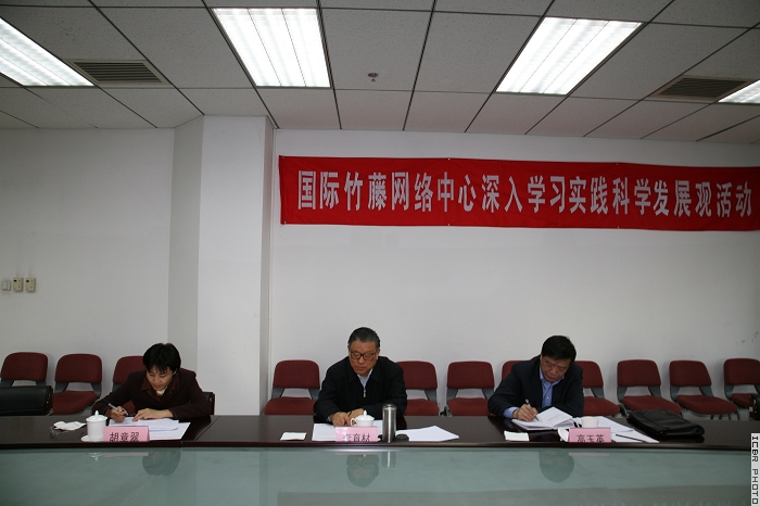 国家林业局党组副书记、副局长李育材一行深入国际竹藤网络中心调研,检查指导学习实践科学发展观活动