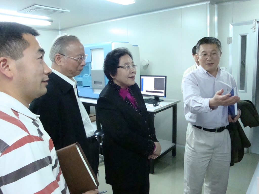 会后,江泽慧主任到实验室,具体察看了测序设备、数据分析与处理系统等。
