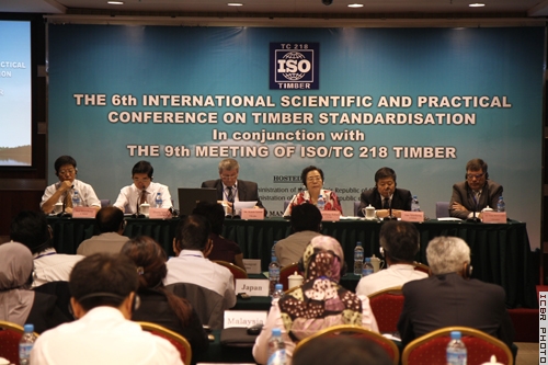 ISO/TC 218技术委员会秘书长Ivan Derevjanko先生、国家林业局科技司司长魏殿生先生,国家林业局科技发展中心主任、国家林业局科技司副司长胡章翠、中国林科院木材工业研究所副所长吕建雄研究员等领导以及来自中国、俄罗斯、美国、加拿大、日本、乌克兰、白俄罗斯、马来西亚、肯尼亚等11个国家的60多位代表出席会议。