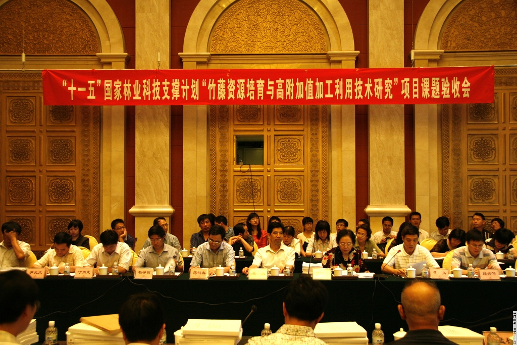 9月1-2日,国家林业局科技司在北京西郊宾馆组织召开“十一五”国家林业科技支撑计划重点项目“竹藤资源培育与高附加值加工利用技术研究”课题验收会议,对项目所属9个课题进行验收。项目各课题负责人、专题负责人以及各课题承担单位科研管理负责人共70余人参加了会议。项目负责人,全国政协人口与资源环境委员会副主任、国际竹藤网络中心主任江泽慧教授出席会议并做重要讲话,林业局科技司李兴副司长主持会议。