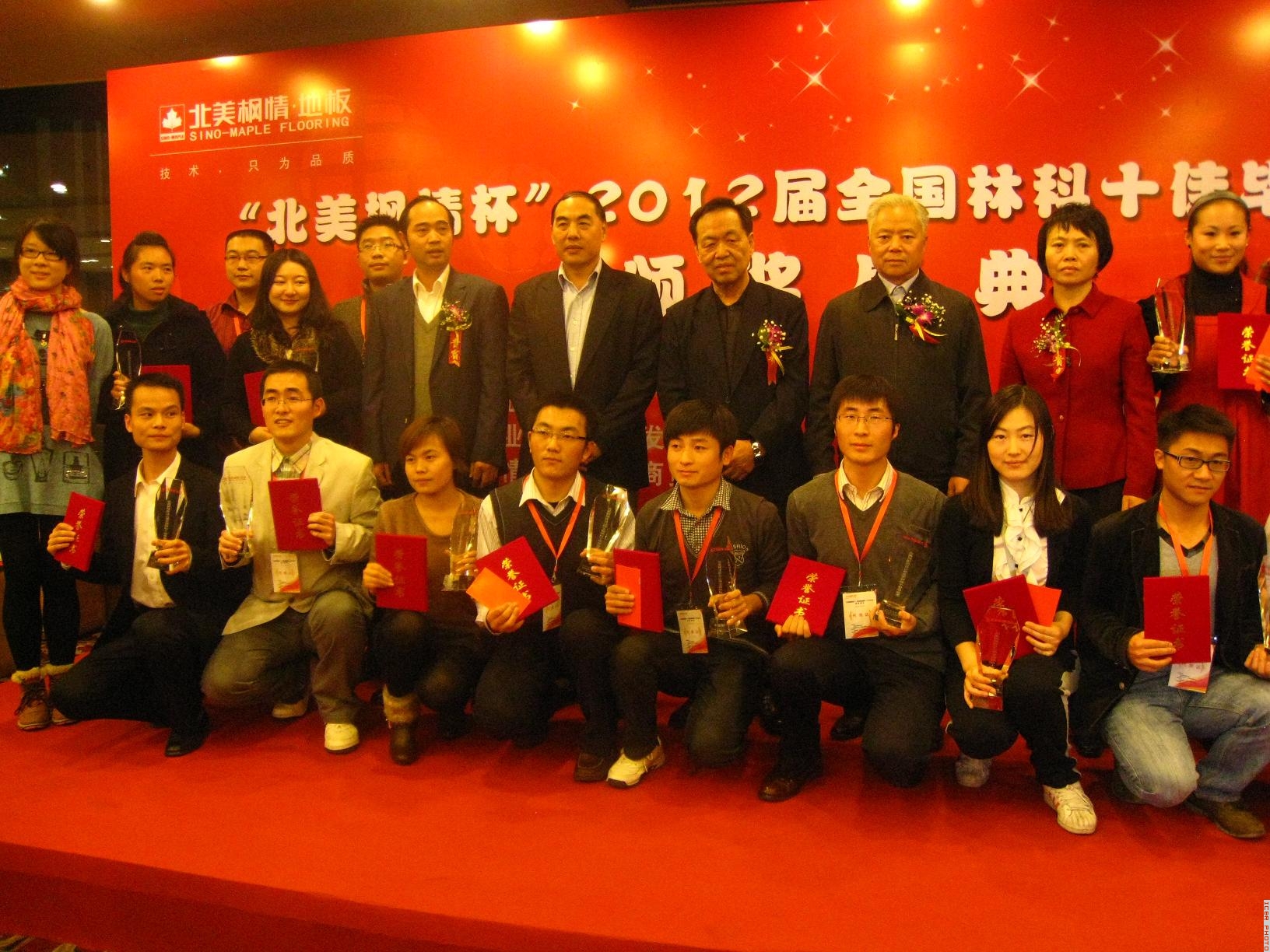,“北美枫情杯”2012届全国林科十佳毕业生颁奖仪式在北京国际竹藤大厦隆重举行。费本华副主任代表我中心出席了颁奖典礼,中心有2名2012届博士研究生获奖并应邀参加了颁奖活动。