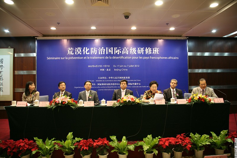 ,在第18个“世界防治荒漠化和干旱日”这一天,2012年非洲法语国家荒漠化防治高级研修班在北京正式开班。开班仪式上,国家林业局局长赵树丛作主旨讲话,全国政协人资环委副主任、国际竹藤中心主任江泽慧主持,国家林业局副局长张永利宣读联合国荒漠化公约秘书长吕克·尼亚卡贾的贺信。仪式前,赵树丛、江泽慧、张永利会见了外国使节和国际组织代表。外交部、商务部、联合国开发计划署、阿尔及利亚驻华使馆和非洲学员代表分别在开班式上发言。来自20多个非洲国家的学员及其所在国部分使节、联合国机构驻华代表共50多人参加了开班仪式。