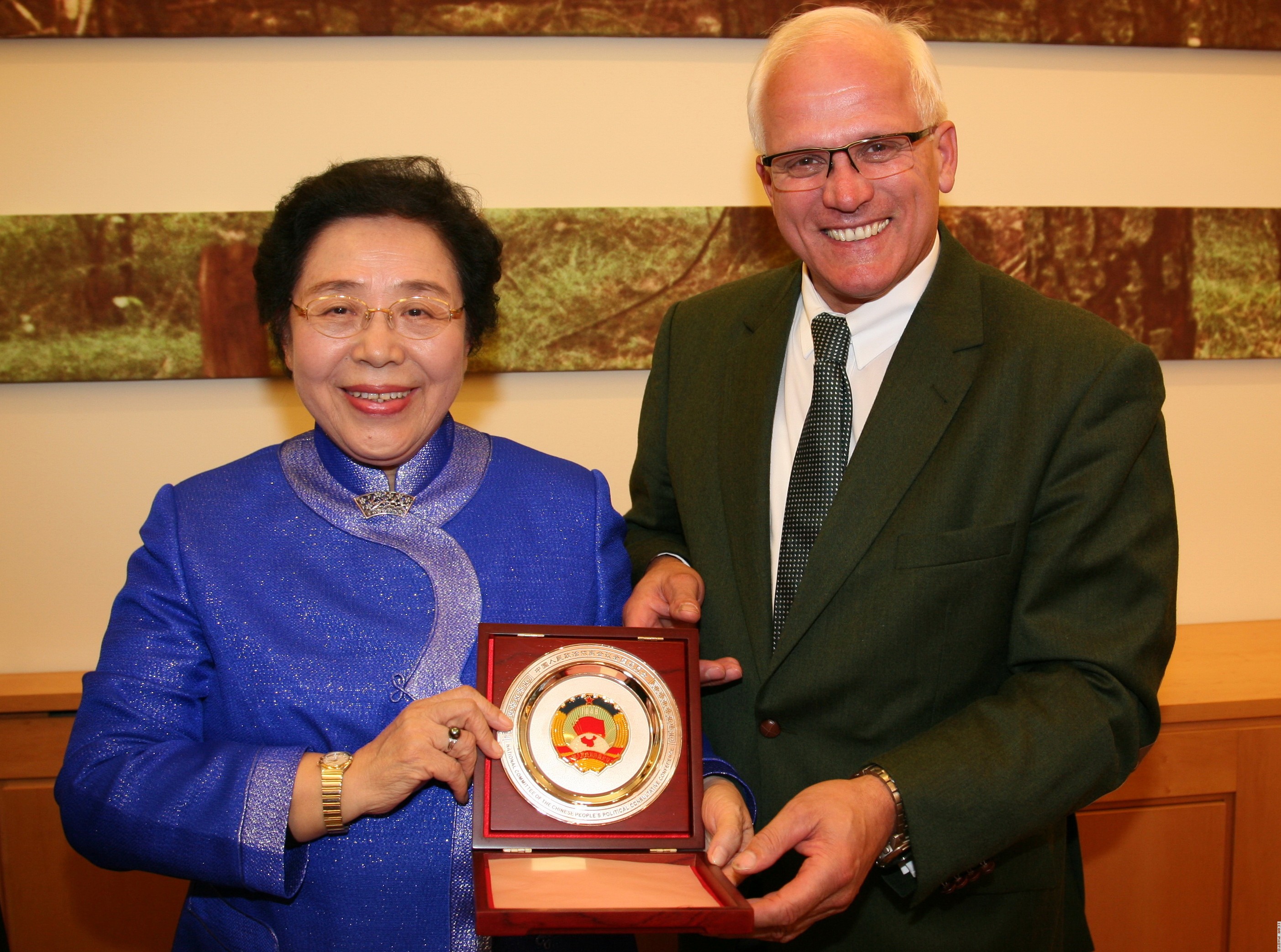 2012年10月22日,全国政协人口资源环境委员会副主任、国际竹藤组织董事会联合主席、中国林学会理事长江泽慧,率全国政协代表团考察德国林业可持续发展和城市森林建设。德国食品、农业和消费者保护部国务秘书彼得·布莱塞(Peter Bleser)先生在柏林会见了代表团一行,并进行了工作交流。