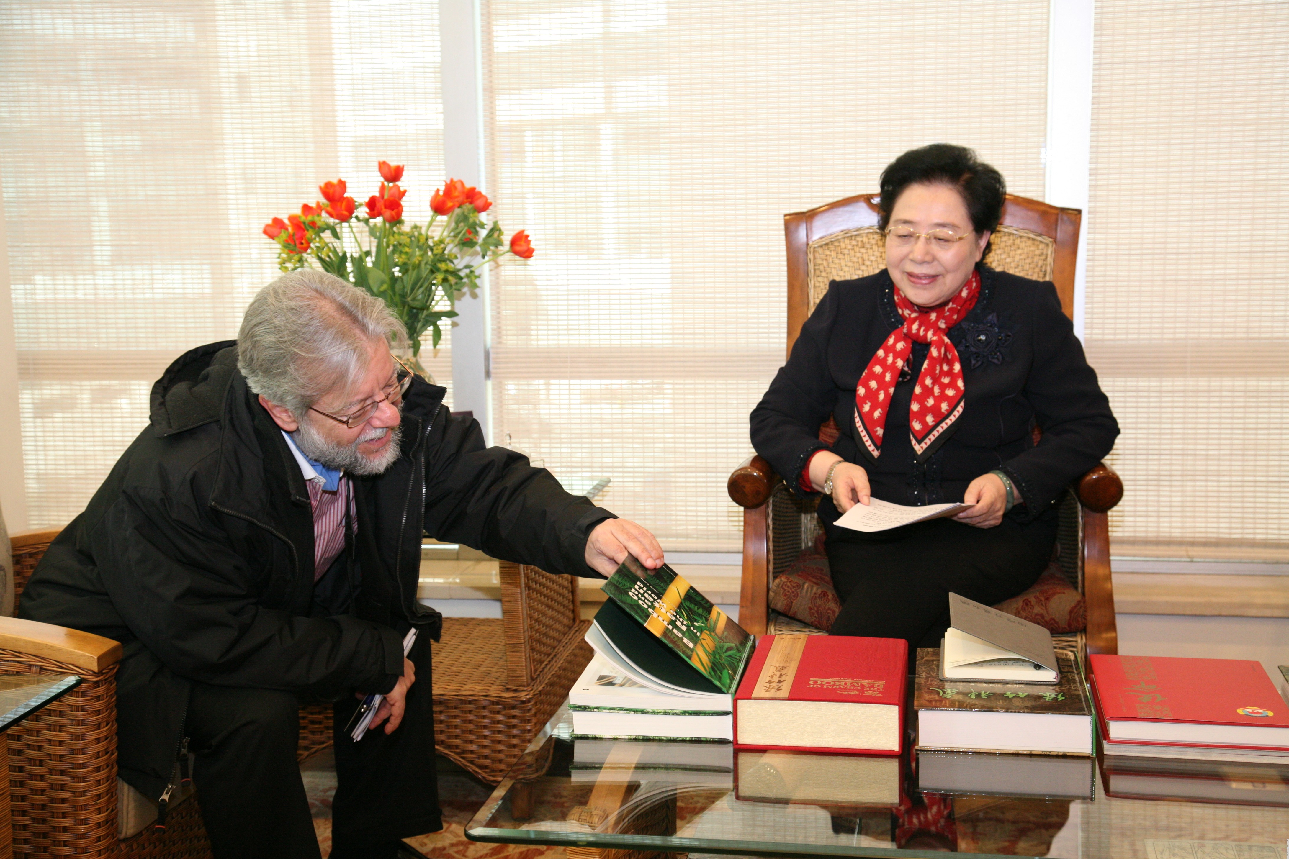 2013年4月8日,全国政协人口资源环境委员会副主任、国际竹藤组织(INBAR)董事会联合主席、国际竹藤中心主任江泽慧,在国际竹藤组织总部接受了中国日报资深编辑迈克·彼得斯(Mike Peters)的专访。
