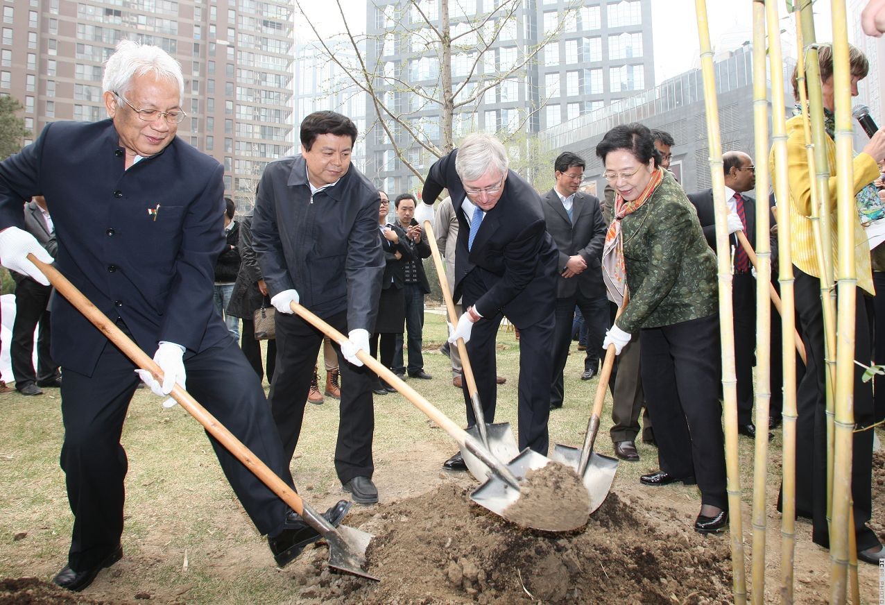 赵树丛局长、江泽慧主任与大使们一起植竹