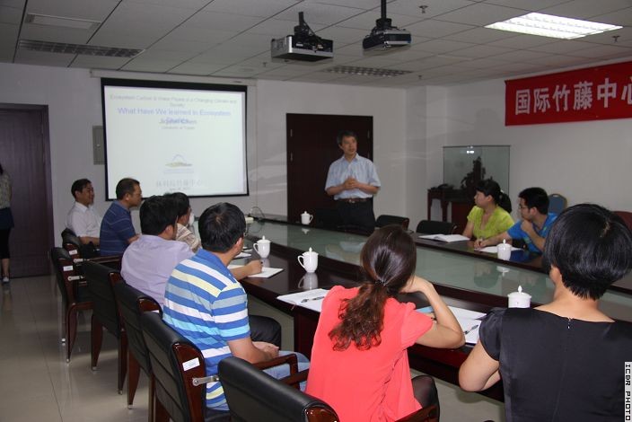 2013年6月27日,美国托莱多大学(University of Toledo)陈吉泉教授访问国际竹藤中心,做了《气候与环境变化背景下生态系统碳水通量》的学术报告,并与竹藤中心相关科研人员开展学术交流。