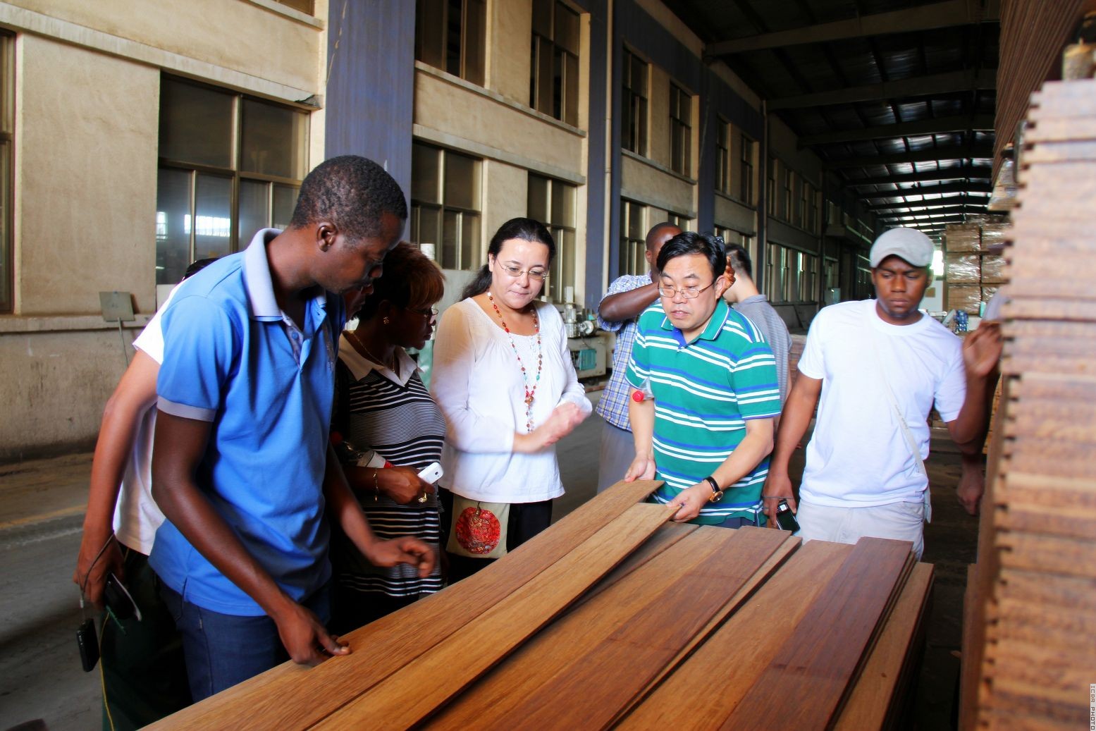 李凤波副主任带领学员参观竹地板厂