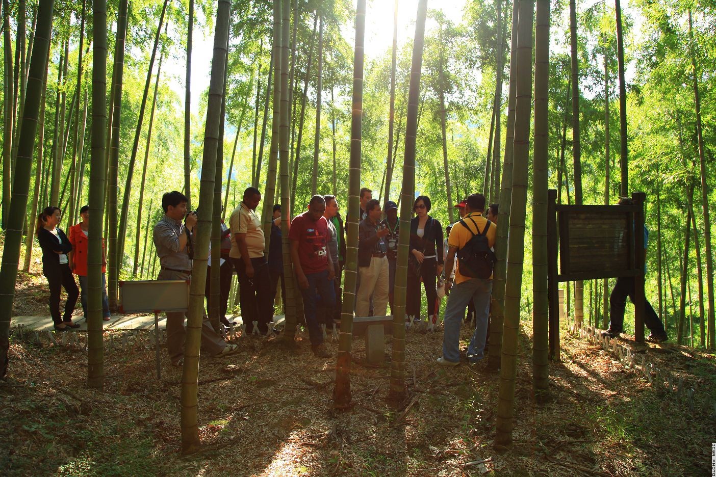 2013年10月12-15日,由国际竹藤组织(INBAR)李智勇副总干事带队,来自12个国家的14名 “国际竹藤组织中青年访问学者计划”学员考察安徽太平试验中心。