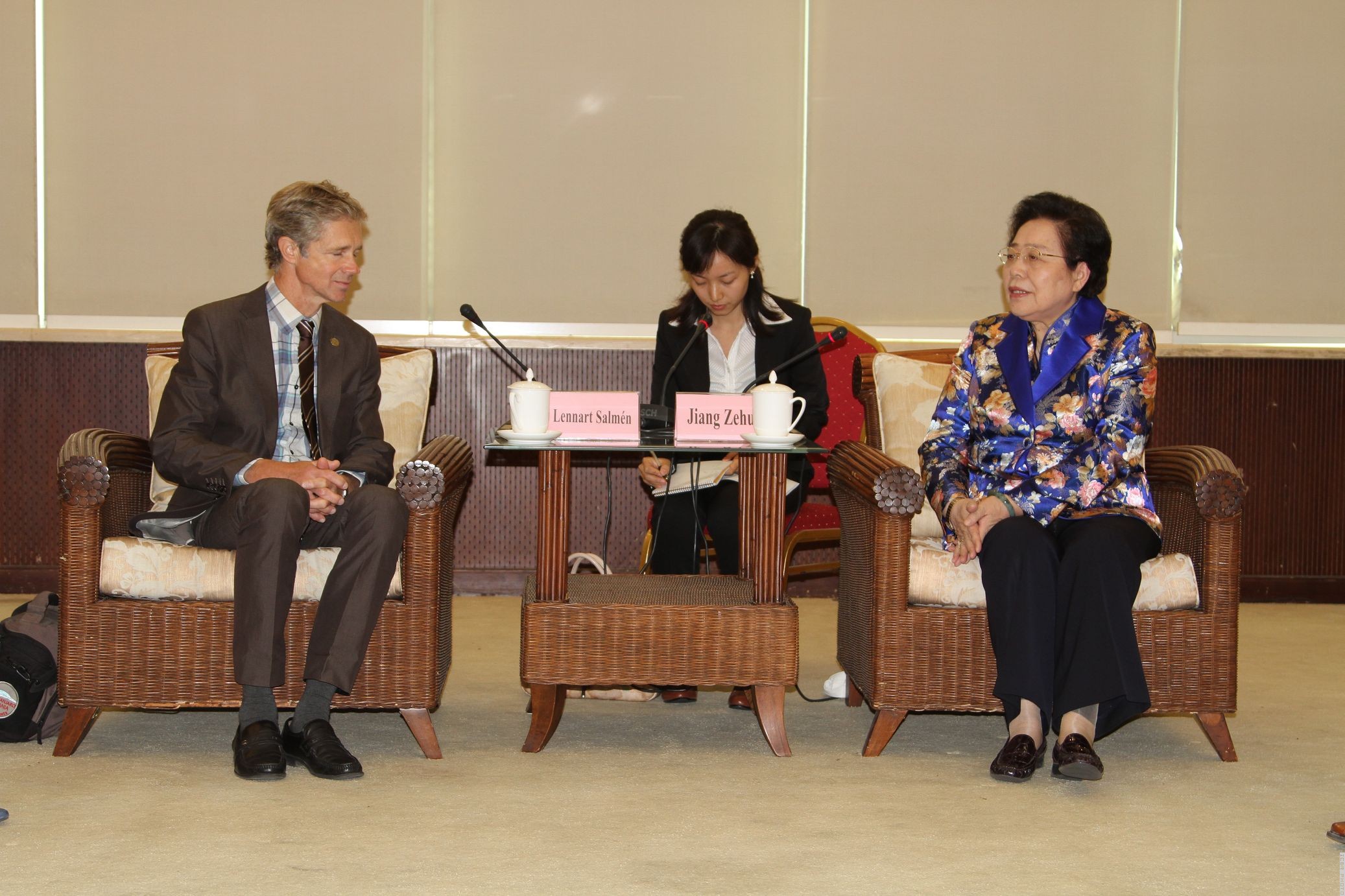 2013年10月16日,全国政协人口资源环境委员会副主任、国际竹藤中心主任江泽慧教授会见应邀来访的国际木材科学院(IAWS)主席、瑞典Innventia A B研究所生物炼制研究部主任、瑞典中部大学客座教授雷纳·沙门(Lennart Salmén)先生。江主任表示,国际木材科学院是世界木材科学与技术领域最权威和最有影响力的学术团体,在促进全球的木材可持续利用中发挥了重要作用。她本人有幸于1999年被推荐加入这个组织,成为国际木材科学院院士的一员,对研究视野的国际化有极大的促进。江主任说,这两年中国有越来越多的中青年科学家被推荐加入国际木材科学院,显示中国的木材科学研究水平有了长足的进步,并得到了国际同行的广泛认可。江主任还回顾了两次率中国林业代表团访问瑞典的愉快经历。沙门教授感谢江主任的邀请以及中心的热情接待,表示国际竹藤中心正在开展的研究项目以及良好的研究条件给他留下了深刻的印象,将尽力促进双方在植物细胞壁结构与性能以及生物质高效转化技术方面的合作。费本华常务副主任,以及国际处、科教处的有关负责人参加了会见。