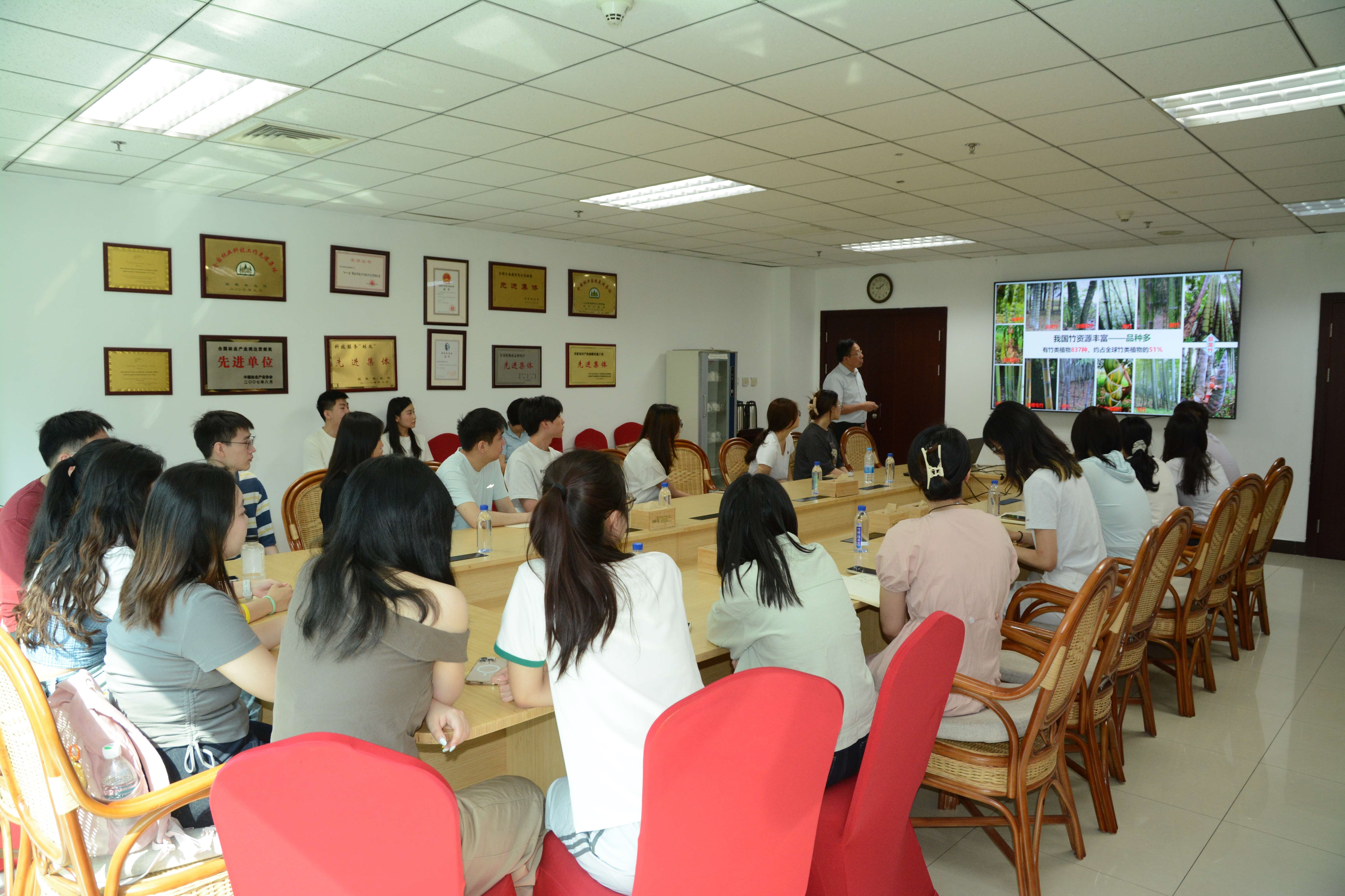 活动伊始,中心党委书记、副主任尹刚强以“神奇的竹子”为主题做专题科普讲座,详细地讲述了竹子的生物学特性、生态学特性以及竹材的广泛用途、竹子在推动可持续发展和促进生态文明建设方面所发挥的积极作用。在交流环节中,同学们就“竹材防霉处理”“竹缠绕管道技术研发”等问题进行了讨论。