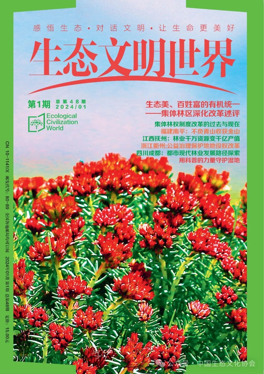 《生态文明世界》创刊于2013年9月,是由国家林业和草原局主管、中国生态文化协会主办的综合科普类期刊。秉承“感悟生态,对话文明,让生命更美好”的办刊宗旨和“纪实、探秘、趣味、科普”的办刊方针,依托国家有关部委、权威研究机构、知名专家学者和作家等,始终坚持高起点策划、高标准组稿、高质量编审,着力开启人文科学与自然科学相融合、人文关怀与生态关怀相统一的审美视野和哲学思考,并受到了读者和业界的关注与认可。2015年荣获“中国最美期刊”,2019年—2022年连续4年入选北京国际图书博览会BIBF中国精品期刊展,2022年被国家林草局评为“林草科技重点期刊”。